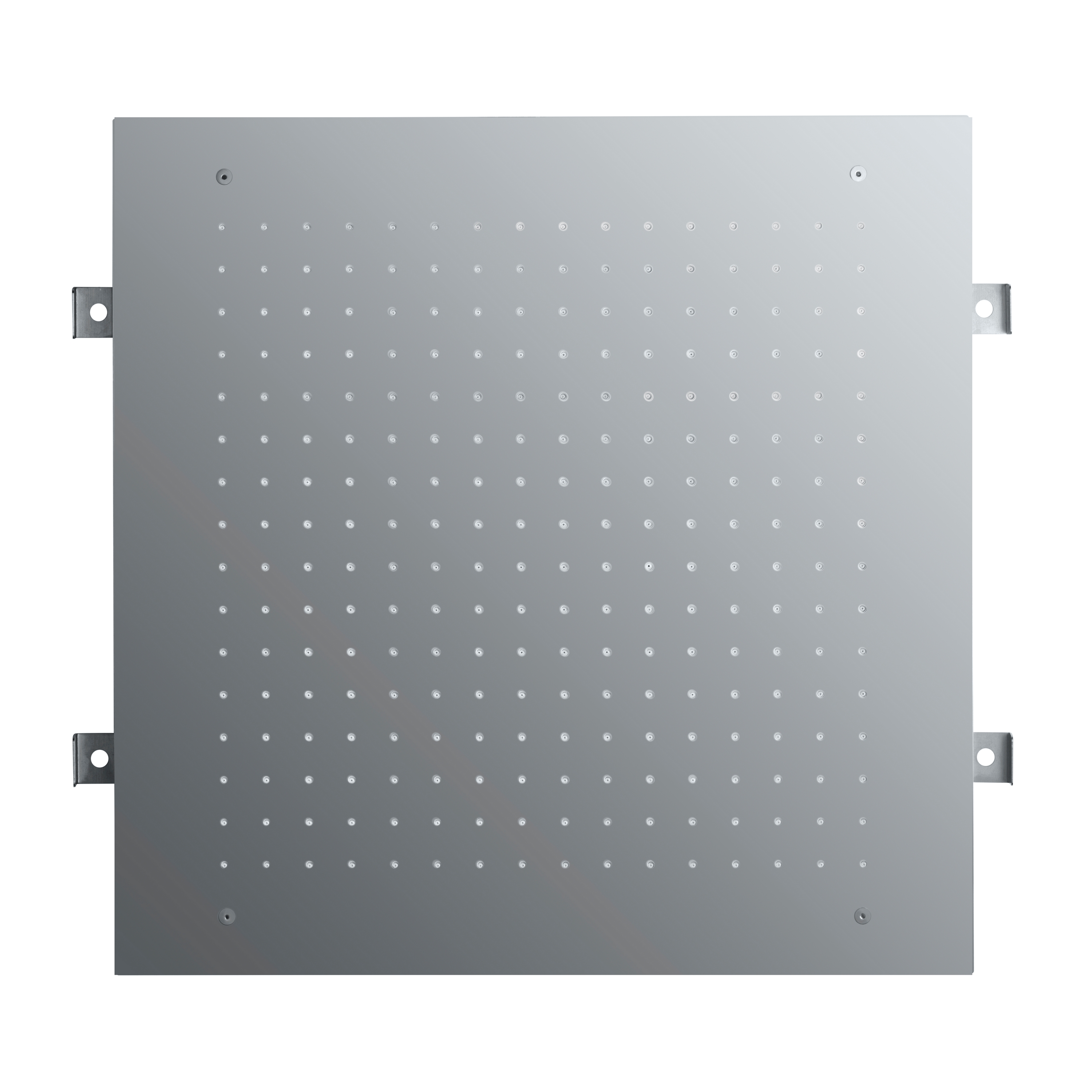 Taksil Tapwell ZSOF 094 är en stor lyxig taksil, 500x500 mm, i förkromad mässing med antikalkfunktion. Denna taksil kombineras med Tapwells produkter för inbyggnad.