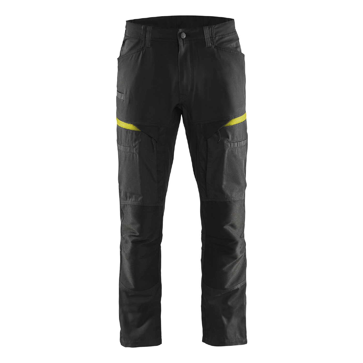 Smidig och stark servicebyxa från Blåkläder som passar olika sammanhang med krav på komfort och rörlighet. Resår i midjan samt en något smalare passform samt stretchpaneler för ökad flexibilitet. Knäna har förstärkning i CORDURA® Stretch som ökar slitstyrkan ytterligare. Kontrastfärger på blixtlås och sömmar som höjer helhetsintrycket samt svarta reflexdetaljer som ger plagget ökad synlighet.