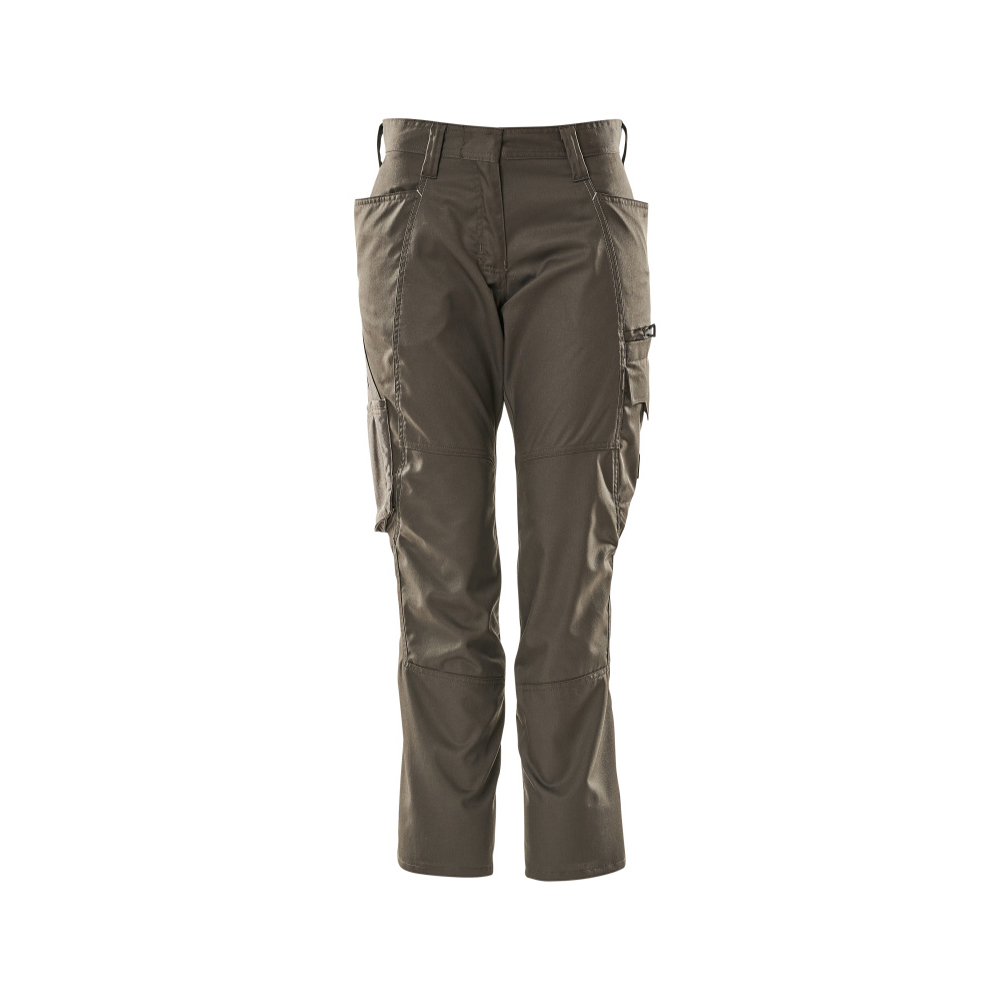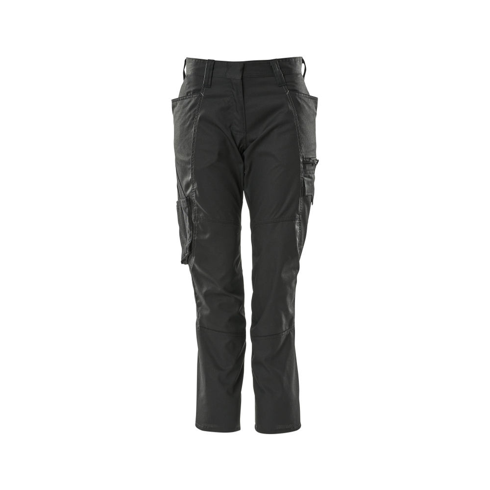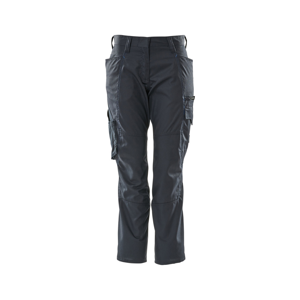 Lady passform DIAMOND. Lätt kvalitet. Tvånålsstickningar på benen och i grenen. Låg midja och formskuren linning. Byxbenen är ergonomiskt formade. Bältesstroppar. Stängning med blixtlås. Fickor på framstycket. Bakfickor. Benficka med telefonficka och lock med dold tryckknapp och inbyggd ID-korthållare. ID-kortshållaren är avtagbar. Tumstocksfickan är CORDURA®-förstärkt. Med tryck och reflexer.