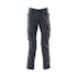 Enfärgade. Lätt kvalitet. Tvånålsstickningar på benen och i grenen. Låg midja och formskuren linning. Byxbenen är ergonomiskt formade. Bältesstroppar. Gylf med blixtlås. Fickor på framstycket. Bakfickor. Benficka med telefonficka och lock med dold tryckknapp och inbyggd ID-korthållare. ID-kortshållaren är avtagbar. Tumstocksfickan är CORDURA®-förstärkt. Med tryck och reflexer.