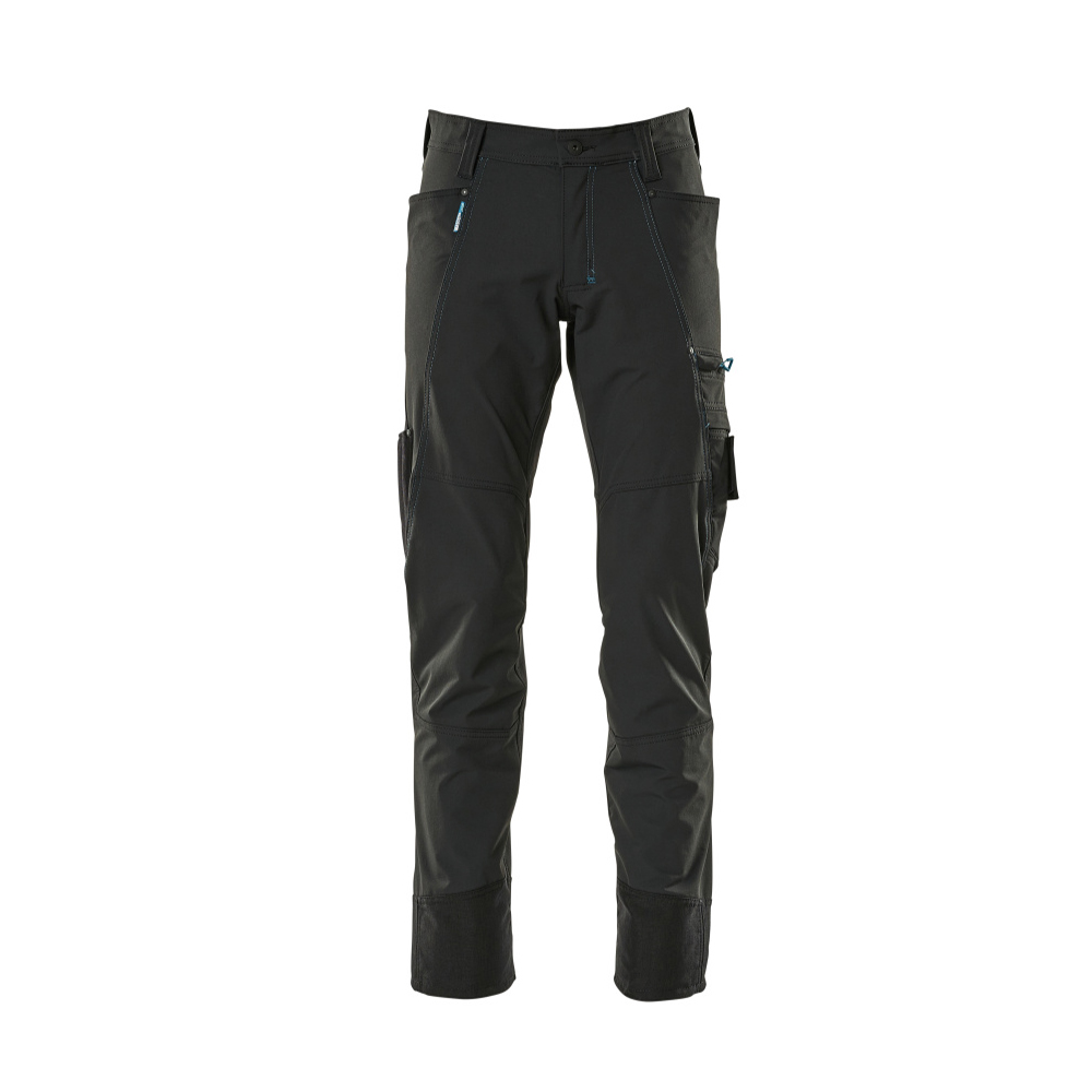 Har en vattenavvisande yta. Ultimate stretchtyg med låg vikt och hög slitstyrka. Tyget känns nästan inte av mot huden eftersom fickorna har integrerats i designen. Tvånålsstickningar på benen och i grenen. Låg midja. Byxbenen är ergonomiskt formade. Bältesstroppar. Gylf med blixtlås. Fickor på framstycket. Bakfickor. Benficka med telefonficka och inbyggd ID-kortshållare. ID-kortshållaren är avtagbar. Tumstocksficka i CORDURA® med extra fickor. Reflexeffekter.