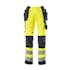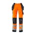 Fluorescerande och med reflexer. Tvåfärgat. Teflon® gör produkten smutsavvisande. Trenålsstickningar på benen och i grenen. Låg midja och formskuren linning. Byxbenen är ergonomiskt formade. Hängfickor i CORDURA® som är justerbara och har extra fickor till verktyg. Bältesstroppar. Gylf med blixtlås. D-ring. Verktygsstropp i linningen. Fickor på framstycket. Bakfickor med förstärkningar, lock och dolda tryckknappar. Hammarstroppen är justerbar. Benficka med förstärkningar och extra fickor – en invändig telefonficka samt en utvändig telefonficka med lock och magnetknäppning. Tumstocksficka med CORDURA®-förstärkt öppning. Justerbara knäfickor i slitstark CORDURA® (500 D) med ficklock och öppning ovanifrån. Lodräta reflexremsor på yttersidan av benen för extra synlighet. Innerbenslängden kan ökas med 3 cm genom att ta bort den invändiga röda sömmen vid foten. Vi rekommenderar 00718-100, 00418-100, 50454-916 & 20118-915 knäskydd till den här modellen. Samcertifierade med knäskyddstyp SHORT eller LONG enligt EN 14404.