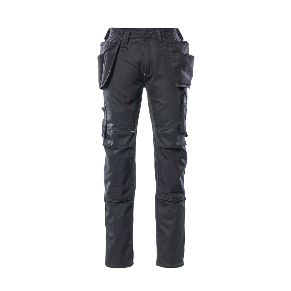 Slitstarka trenålssömmar på ben och i skrev förlänger produktens livslängd. Den låga skärningen med formskuren linning ser till att byxorna följer och stöder alla kroppens rörelser. Hängfickor i CORDURA® som är justerbara och har extra fickor till verktyg. Telefonficka integrerad i höger framficka. Av slitstark CORDURA® – med öppning för knäskydd från ovansidan och med lucka så att inte smuts samlas. Samcertifierade för användning med MASCOT:s knäskyddstyp SHORT eller LONG, eftersom knäskyddsfickan kan höjdjusteras.