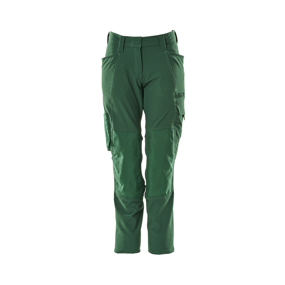 Passformen Diamond är särskilt designad för kvinnor med en skillnad på mer än 20 centimeter mellan midje- och höftmåttet. Stretchtyget är elastiskt åt alla håll, vilket ger en unik rörelsefrihet, där inget stramar eller irriterar. Det multifunktionella stretchtyget kombinerar låg vikt med mycket hög slitstyrka, samtidigt som det är vattenavvisande. Effektiv ventilation vid knäområdet via blixtlås på sidan av benet. Tyget tål industritvätt. Knäfickorna i slitstarkt CORDURA® är reglerbara, så att knäskydden får den optimala placeringen. Samcertifierade för användning med MASCOT:s knäskyddstyp SHORT eller LONG, eftersom knäskyddsfickan kan höjdjusteras.