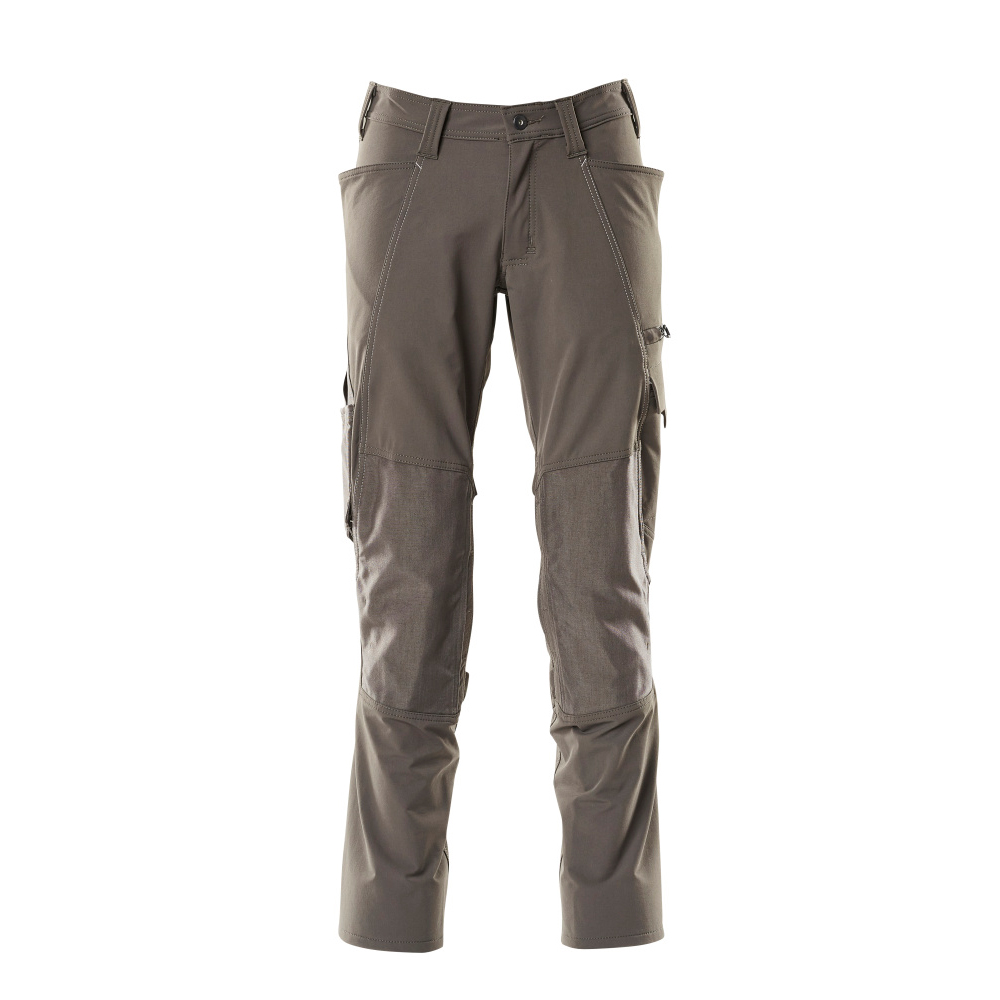Stretchtyget är elastiskt åt alla håll, vilket ger en unik rörelsefrihet, där inget stramar eller irriterar. Det multifunktionella stretchtyget kombinerar låg vikt med mycket hög slitstyrka, samtidigt som det är vattenavvisande. Tyget tål industritvätt. Den låga skärningen med formskuren linning ser till att byxorna följer och stöder alla kroppens rörelser. Effektiv ventilation vid knäområdet via blixtlås på sidan av benet. Knäfickorna i slitstarkt CORDURA® är reglerbara, så att knäskydden får den optimala placeringen. Som standard i tre olika benlängder så kan du välja den bästa passformen och den optimala placeringen av detaljer just för dig. Samcertifierade för användning med MASCOT:s knäskyddstyp SHORT eller LONG, eftersom knäskyddsfickan kan höjdjusteras.