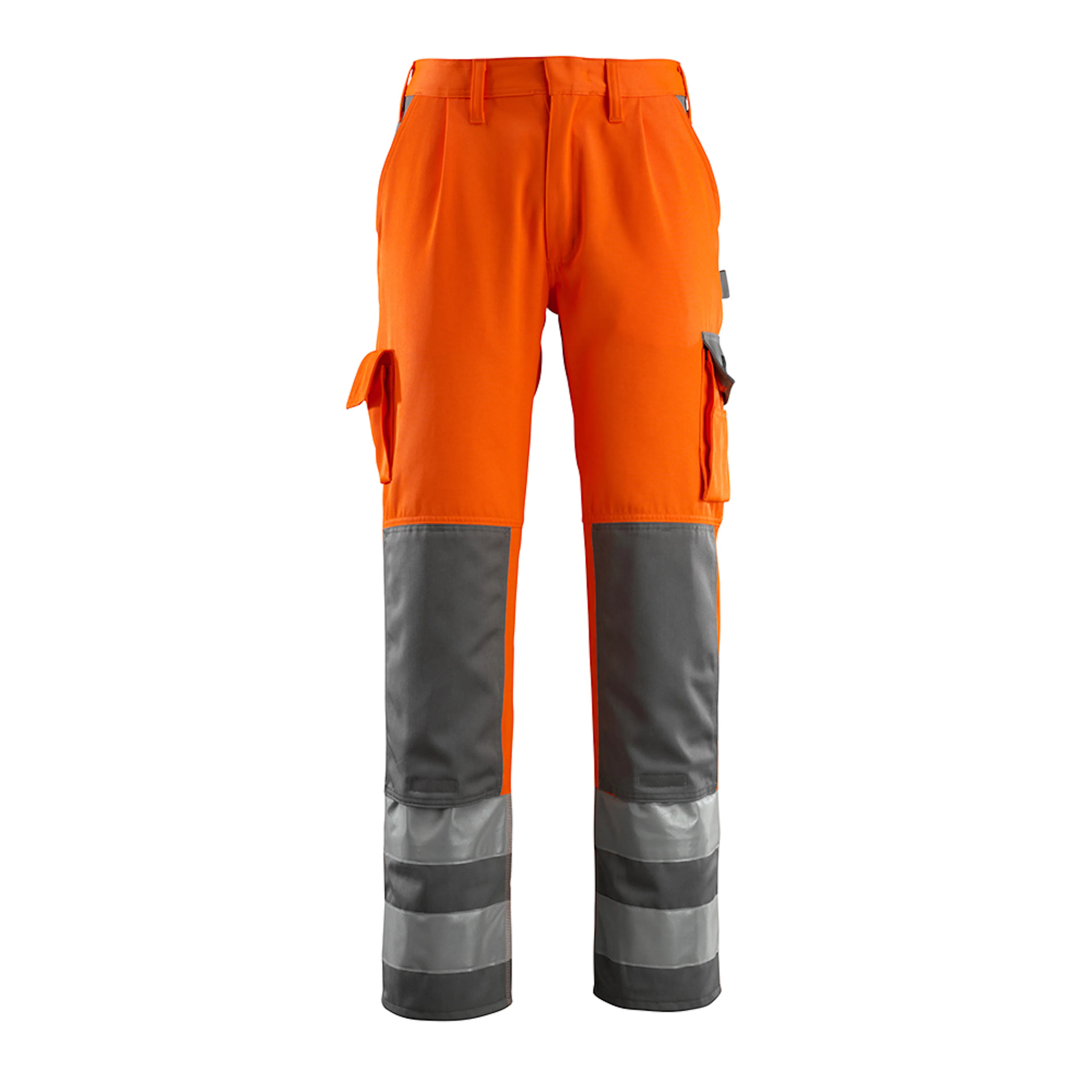Fluorescerande och med reflexer. Teflon® gör produkten smutsavvisande. Tvåfärgat. Trenålsstickningar på benen och i grenen. Bältesstroppar. Gylf med blixtlås. Fickor på framstycket. Bakfickor med förstärkning - den ena med lock och kardborreband. Hammarstroppen är justerbar. Benficka med flera fack, lock och justerbart kardborreband. Tumstocksficka. Telefonbenficka med lock, och justerbart kardborreband. Pennfickor. Knäfickor. Vi rekommenderar 00718-100, 50451-916 & 20118-915 knäskydd till den här modellen. Samcertifierade med knäskyddstyp LONG enligt EN 14404.