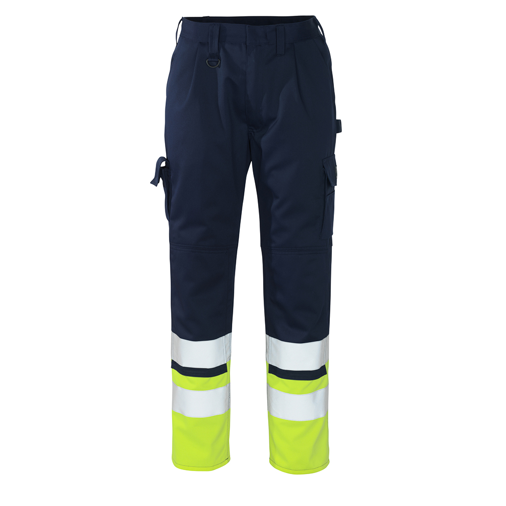 Fluorescerande kontrastfärg och med reflexer. Fluorescerande del är Teflon®-behandlad och smutsavvisande. Tvåfärgat. Trenålsstickningar på benen och i grenen. Bältesstroppar. Gylf med blixtlås. D-ring. Fickor på framstycket. Bakfickor med förstärkning - den ena med lock och kardborreband. Hammarstroppen är justerbar. Benficka med flera fack, lock och justerbart kardborreband. Tumstocksficka. Telefonbenficka med lock, och justerbart kardborreband. Pennfickor. Knäfickor. Vi rekommenderar 00718-100, 50451-916 & 20118-915 knäskydd till den här modellen. Samcertifierade med knäskyddstyp LONG enligt EN 14404.