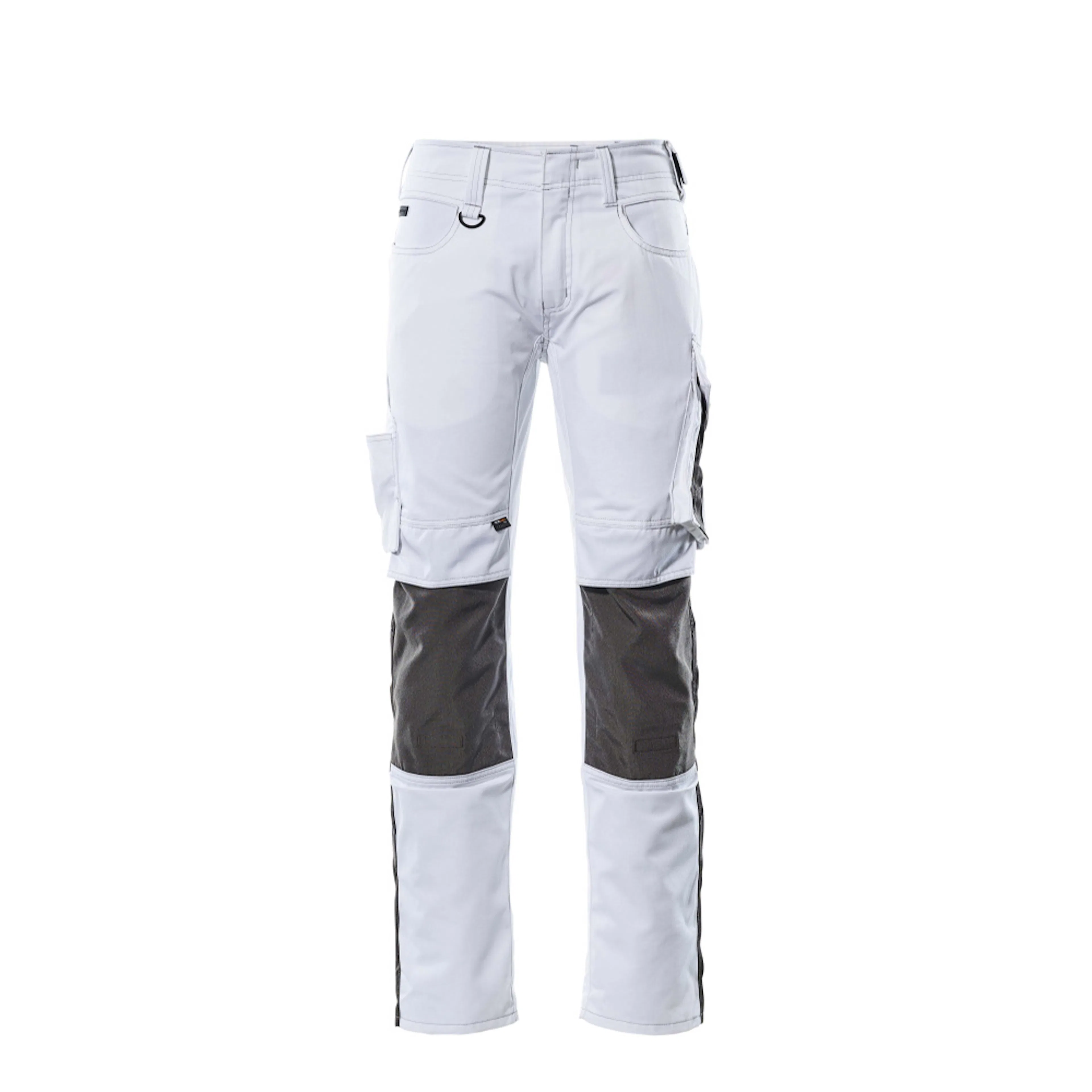 Utmärkt passform med formskurna ben och kilar på insidan av ben och skrev (med extra förstärkning). Slitstarka trenålssömmar på ben och i skrev förlänger produktens livslängd. Telefonficka integrerad i höger framficka. Av slitstark CORDURA® – med öppning för knäskydd från ovansidan och med lucka så att inte smuts samlas. Extra synlig för omgivningarna med hjälp av reflexeffekter. Samcertifierade för användning med MASCOT:s knäskyddstyp SHORT eller LONG, eftersom knäskyddsfickan kan höjdjusteras.