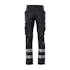 Tyget har låg vikt och hög slitstyrka. Många inlägg av elastiskt material som ger en unik rörelsefrihet. Ergonomiskt formade byxben är tillverkade efter kroppens naturliga rörelser. Väldesignade lårfickor – den vänstra har telefonficka och lock med magnetlås och den högra har pennfickor och ficka speciellt anpassad för ficklampa. Löstagbar ID-korthållare som enkelt kan sättas fast på en lårficka eller D-ring. Kan dessutom användas på alla produkter med D-ring. Reflexband med högsta reflektionsförmåga går hela vägen runt benet och gör användaren extra synlig för omgivningen.