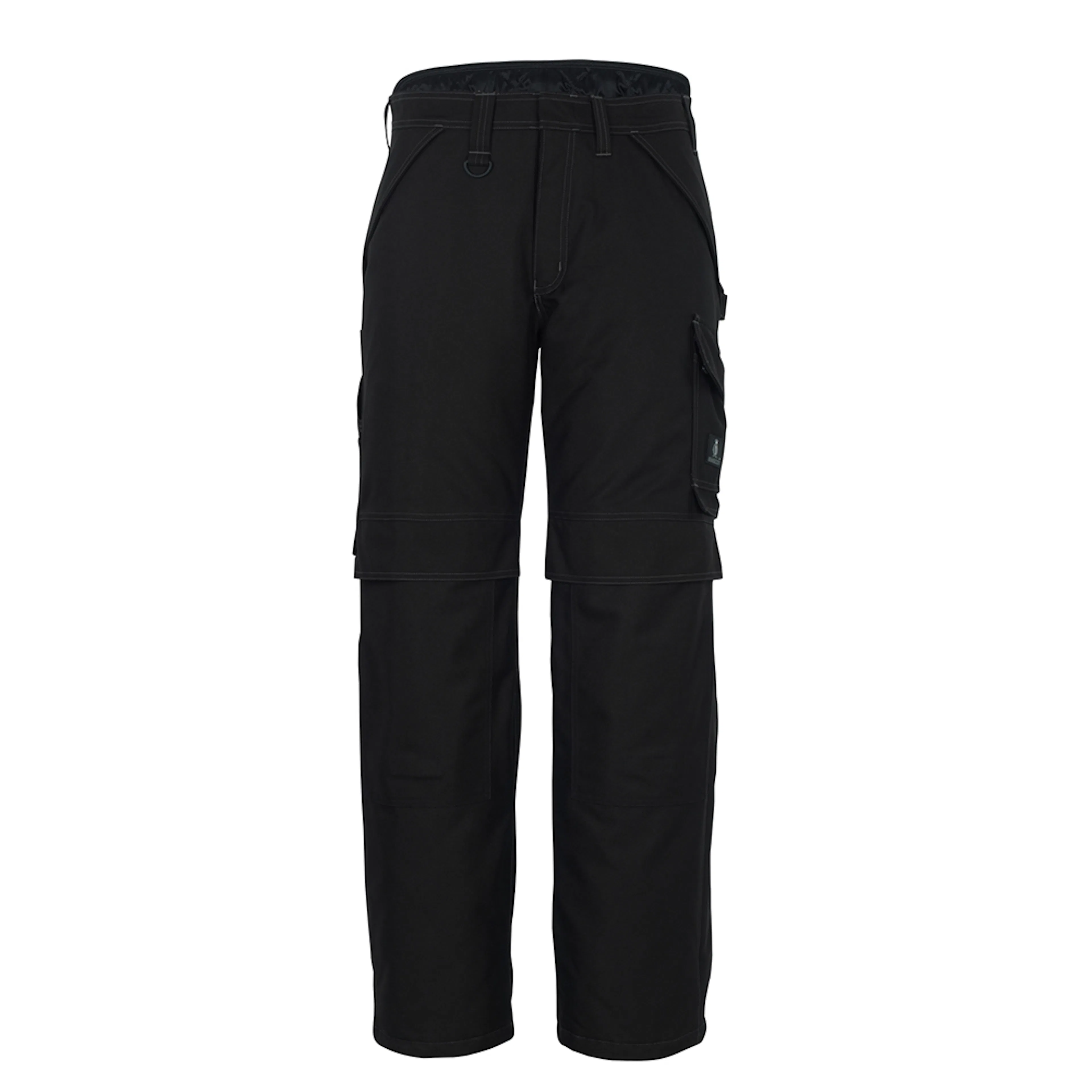Andas, vind- och vattentät. Sömmarna är tejpade. Quiltfoder. Bältesstroppar. D-ring. Gylf med blixtlås. Framfickor med lock och tryckknappar. Bakfickor med förstärkningar och dolda tryckknappar. Hammarstropp. Benficka med lock och tryckknapp. Tumstocksficka. Blixtlås med vindskydd på yttersidan av underbenen. Knäfickorna är justerbara och har lock öppning upptill. Reflexeffekter.