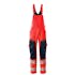 Fluorescerande och med reflexer. Tvåfärgat. Delar av produkten är av stretchtyg. Kombination av lättviktigt tyg kvalitet 236 och ULTIMATE STRETCH kvalitet 511. Tvånålsstickningar på benen och i grenen. Byxbenen är ergonomiskt formade. Hängslen, justerbara och med kort, kraftig resår och spännen av plast. Linningen är justerbar. Bältesstroppar. D-ring. Gylf med blixtlås. Fickor på framstycket. Bakfickor med förstärkningar. Hammarstroppen är justerbar. Tumstocksfickan är förstärkt. Fickor med lock på framsidan av låret. Justerbara knäfickor i slitstark CORDURA® (500 D). Enkel individuell justering av knäficka höjd. Benficka med telefonficka och lock med dolda tryckknappar. Med tryckeffekter. Innerbenslängden kan ökas med 3 cm genom att ta bort den invändiga röda sömmen vid foten. Vi rekommenderar 00718-100, 00418-100, 50454-916 & 20118-915 knäskydd till den här modellen. Samcertifierade med knäskyddstyp SHORT eller LONG enligt EN 14404.