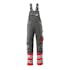 Fluorescerande kontrastfärg och med reflexer. Teflon® gör produkten smutsavvisande. Tvåfärgat. Trenålsstickningar på benen och i grenen. Byxbenen är ergonomiskt formade. Hängslen, justerbara och med kort, kraftig resår och spännen av plast. Ändarna på hängslena kan stoppas undan bakom bröstfickan med hjälp av små stroppar. Bröstficka med fack för penna, telefonficka med blixtlås och lock med dolda tryckknappar. Linningen är justerbar. Bältesstroppar. Gylf med blixtlås. D-ring. Fickor på framstycket. Bakfickor med förstärkningar, lock och dolda tryckknappar. Hammarstroppen är justerbar. Benficka med förstärkningar och extra fickor – en invändig telefonficka samt en utvändig telefonficka med lock och magnetknäppning. Tumstocksficka med CORDURA®-förstärkt öppning. Justerbara knäfickor i slitstark CORDURA® (500 D) med ficklock och öppning ovanifrån. Lodräta reflexremsor på yttersidan av benen för extra synlighet. Innerbenslängden kan ökas med 3 cm genom att ta bort den invändiga röda sömmen vid foten. Vi rekommenderar 00718-100, 00418-100, 50454-916 & 20118-915 knäskydd till den här modellen. Samcertifierade med knäskyddstyp SHORT eller LONG enligt EN 14404.
