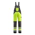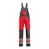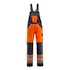 Fluorescerande och med reflexer. Tvåfärgat. Trenålsstickningar på benen och i grenen. Byxbenen är ergonomiskt formade. Hängslen, justerbara och med kort, kraftig resår och spännen av plast. Bröstficka med pennöppning och lock med dolda tryckknappar. Linningen är justerbar. Gylf med blixtlås. D-ring. Fickor på framstycket. Bakfickor med lock. Benficka med lock och dolda tryckknappar. Tumstocksficka med förstärkt öppning. Knäfickorna i polyester är justerbara. Vi rekommenderar 00718-100, 00418-100, 50454-916 & 20118-915 knäskydd till den här modellen. Samcertifierade med knäskyddstyp SHORT eller LONG enligt EN 14404.
