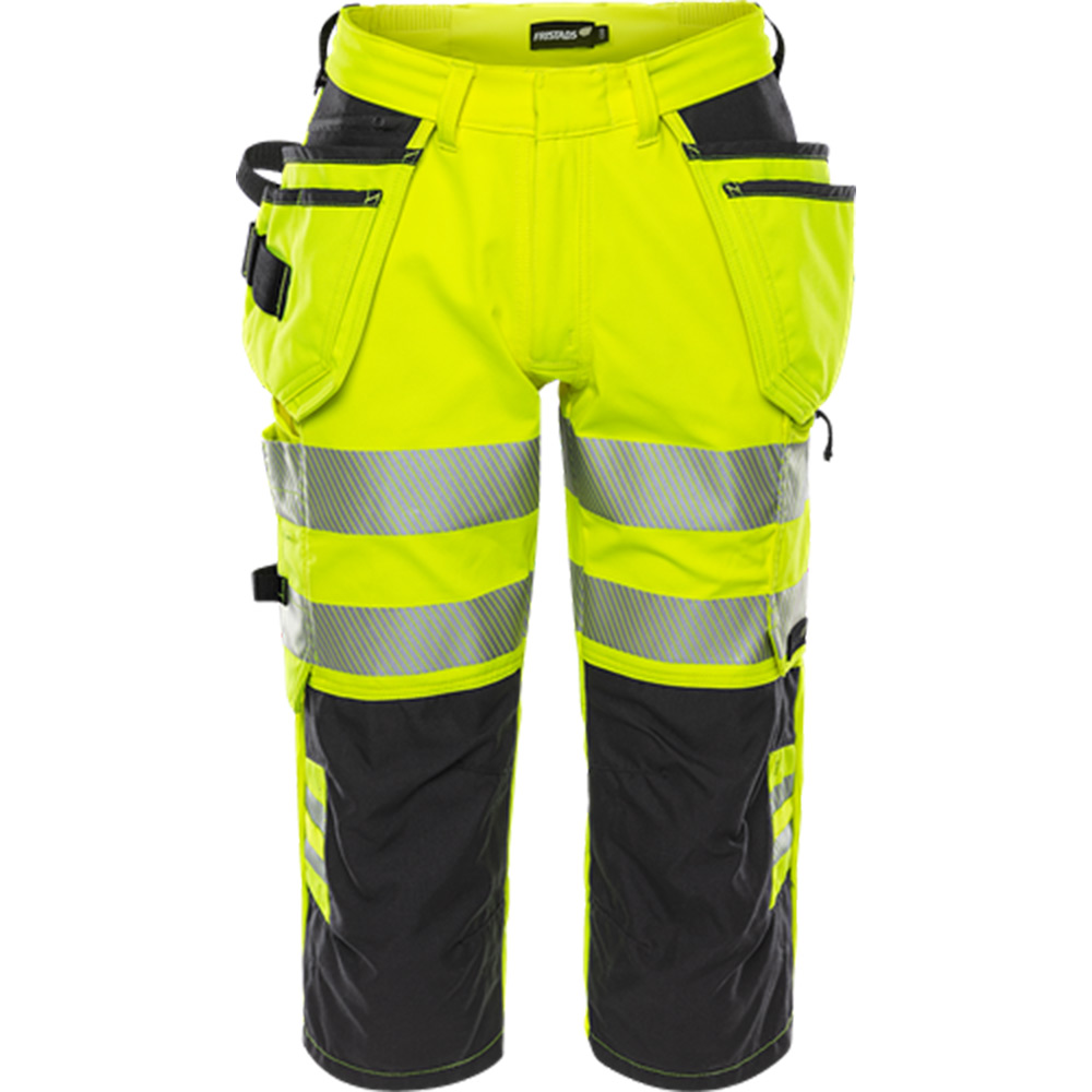 Varsel piratbyxa stretch 2666 GSTP, klass 2. Delvis återvunnet och biobaserad material / 4-vägsstretch / Ribbstickade stretchpartier i midjan / Dold knapp fram / 2 löst hängande CORDURA®-förstärkta spikfickor – den ena med ficka med dragkedja, 3 mindre fickor och verktygshällor, den andra med extra ficka / Spikfickorna är avtagbara med dold dragkedja / D-ring under spikfickan / 2 framfickor / 2 rymliga bakfickor / Dubbel förstärkt grensöm / Hammarhank / CORDURA®-förstärkt tumstocksficka med verktygsficka, pennficka samt knapp och hälla för kniv / Benficka med tryckknapp, ficka med dragkedja och D-ring / Knäfickor i CORDURA® med öppning inifrån / Knäskydden i knäfickorna kan höjdjusteras / Godkänd enligt EN ISO 20471 klass 1 för C44-C46 och klass 2 för C48-C62 , EN 14404 tillsammans med knäskydd 124292 och EN 13758-2 UPF 40+ UV-skydd / Godkänd efter 50 tvättar / OEKO-TEX®-certifierad.