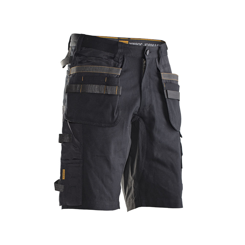 Smidiga hantverksshorts i hållbar kavalleri twill med paneler i form av grenkil i stretch Cordura som ger extra rörlighet. Rymliga hölsterfickor med extrafack och förstärkt insida som kan stoppas ned i framfickorna. Extra hällor för bältet på de största storlekarna. Hammarhank. Tumstocksficka med knivhållare. Snedställd benficka med blixtlås, telefonfack, ID-kortsfack och extra fack.