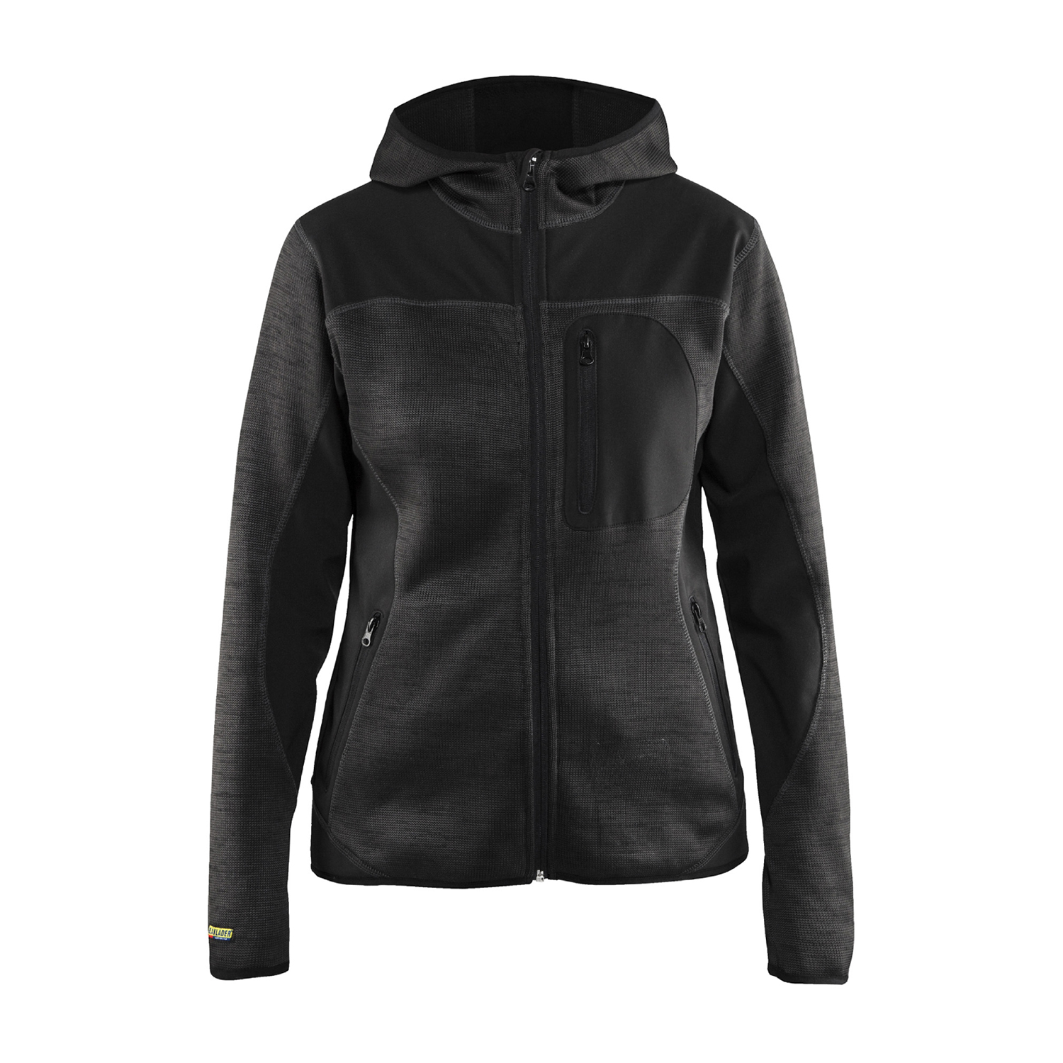 Stickad jacka i dammodell från Blåkläder i snygg design och bekväm kvalitet. Jackan är förstärkt med softshellmaterial på armbågar, axlar och ryggslut för ökad slitstyrka. Funkar lika bra i arbete som på fritiden.