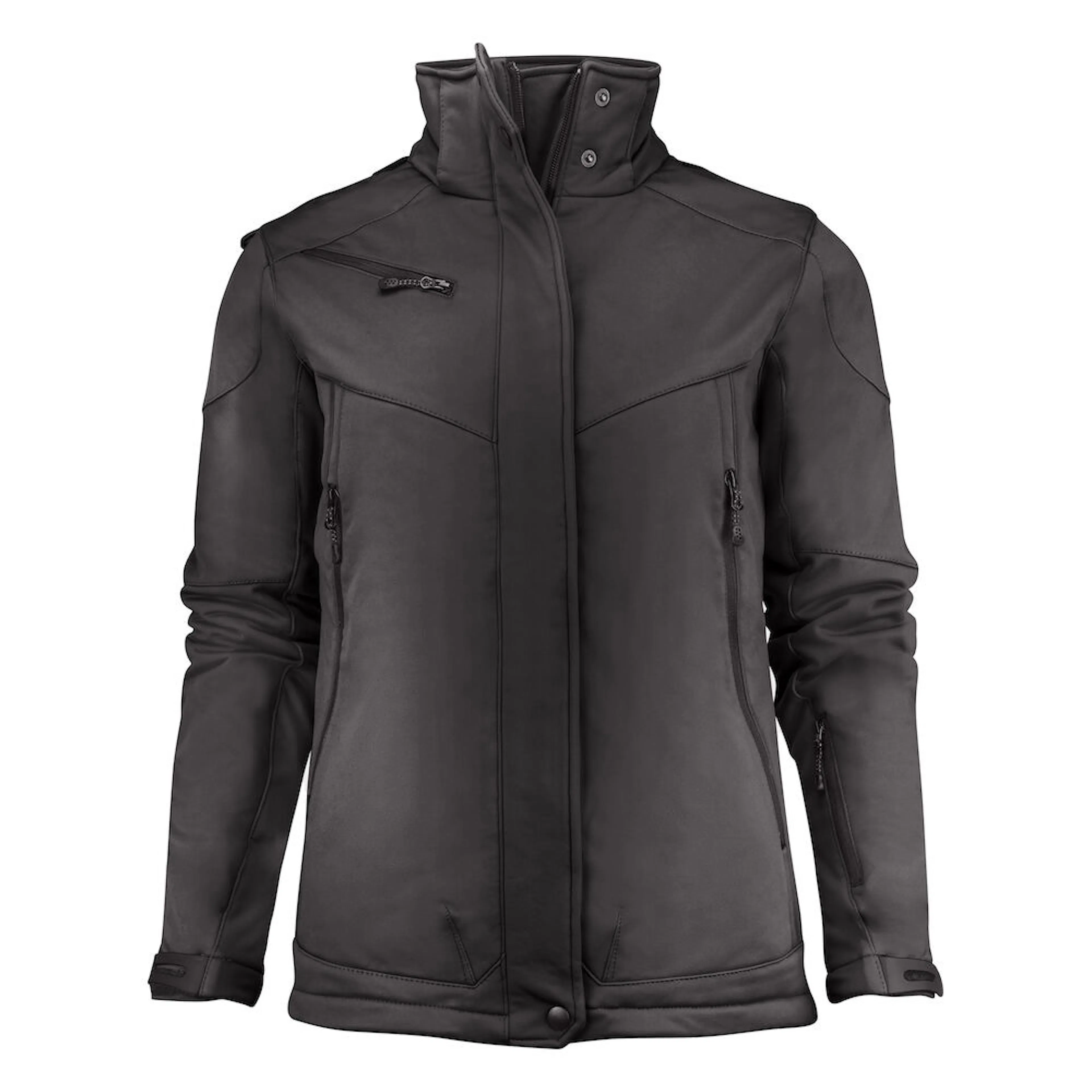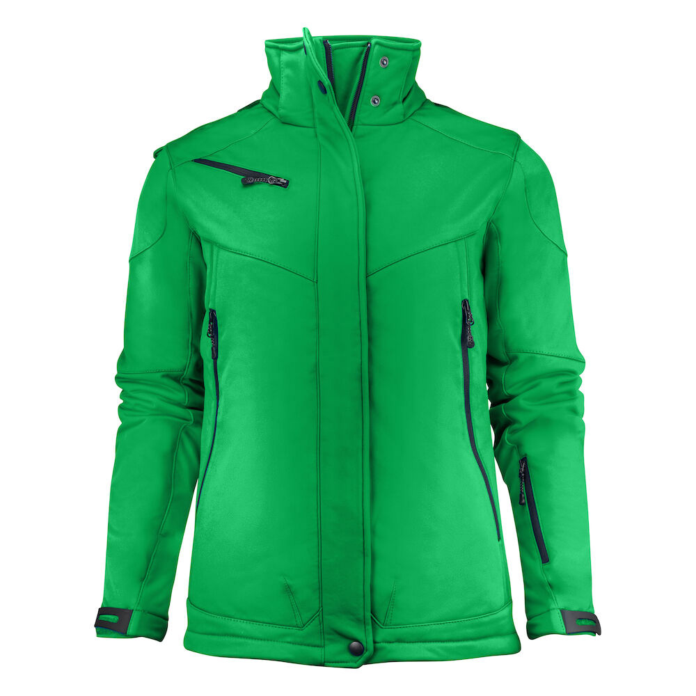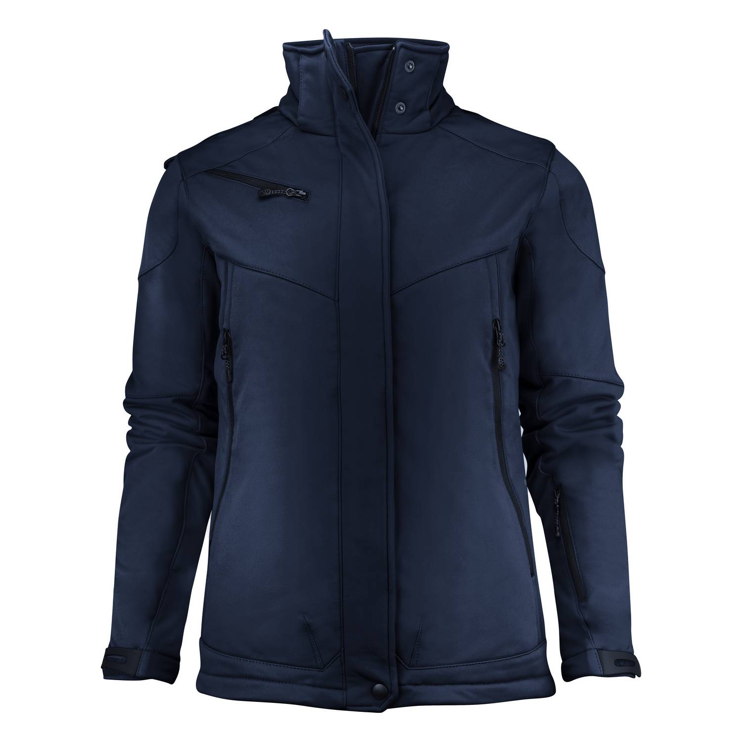 Vadderad soft shell-jacka med avtagbar huva. Dragsko i nederkant samt kardborrejustering i ärmavslut. Förböjda ärmar. Framfickor och bröstficka med dragkedja, 2 innerfickor med dragkedja samt en meshficka.