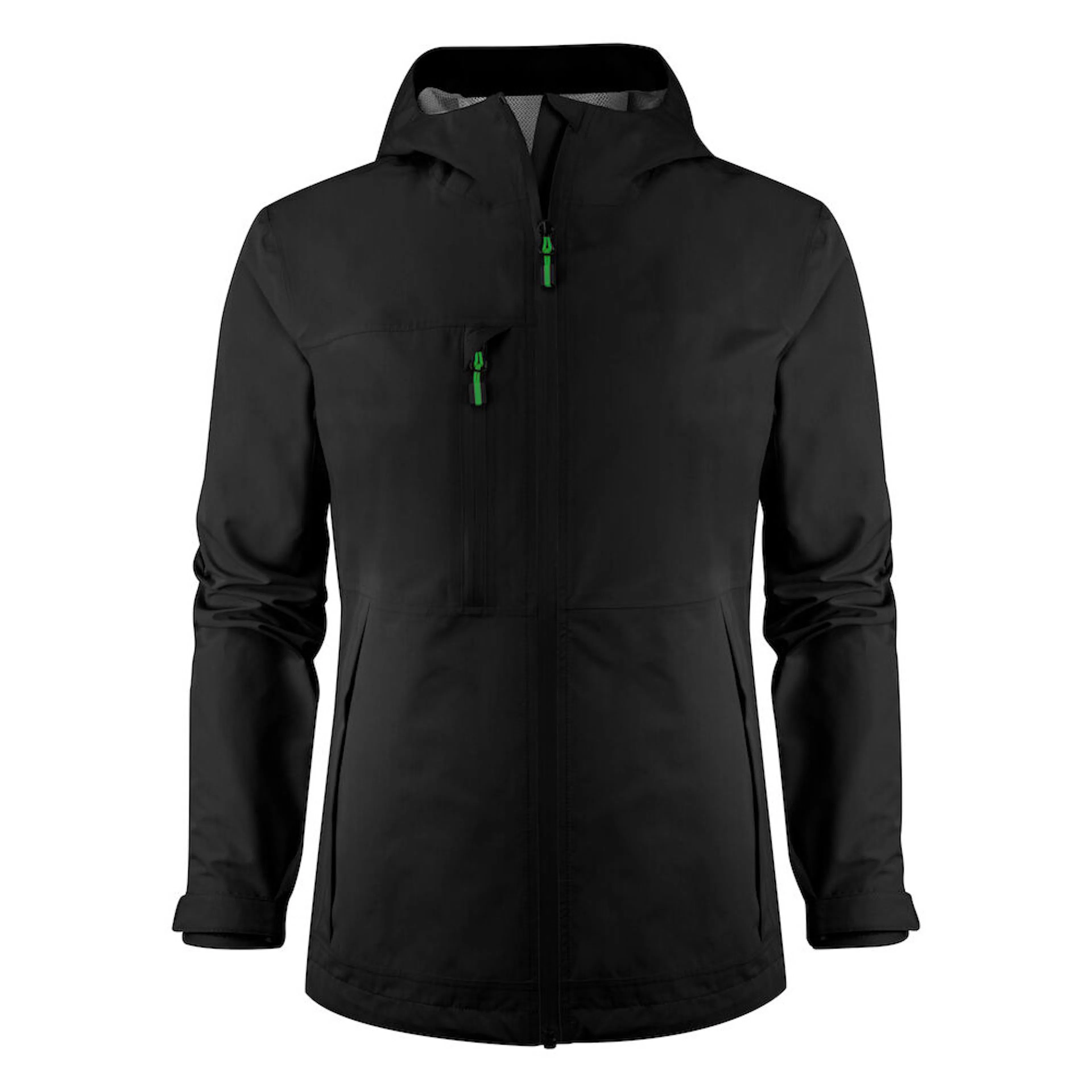 Vind- och vattentät jacka med god andasfunktion. Funktionell skaljacka med tejpade sömmar. Vattentät dragkedja fram och vid bröst. Omvända nylondragkedjor vid sidfickor. Justerbara ärmar med kardborreband. Invändigt meshfoder med broderidragkedja. Huvan och nederkanten är justerbara med ett elastiskt snöre. Dragkedja i kontrastfärg. Möjligt att lägga till zip pullers i andra färger som matchar företagets logotyp. Förpackad i en biobaserad, komposterbar påse.