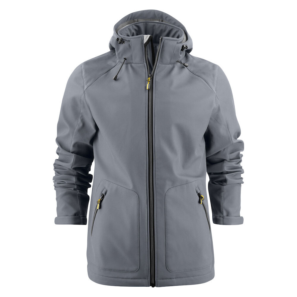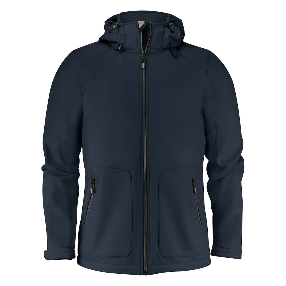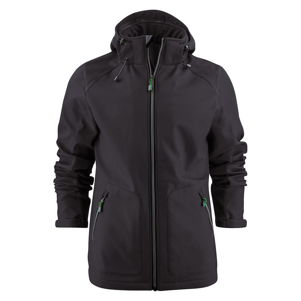 Softshell jacka med avtagbar huva. 96% Polyester, 4% Elastan, bondad med 100% fleece, 280 gsm. 3000WP/ 3000Mvp. Reglerbart nedtill med resår och ärm avslut med velcro-straps. Reflex piping bak för högre synbarhet.Blixtlås och zip pullers på klassiskt Printer Essentials manér.