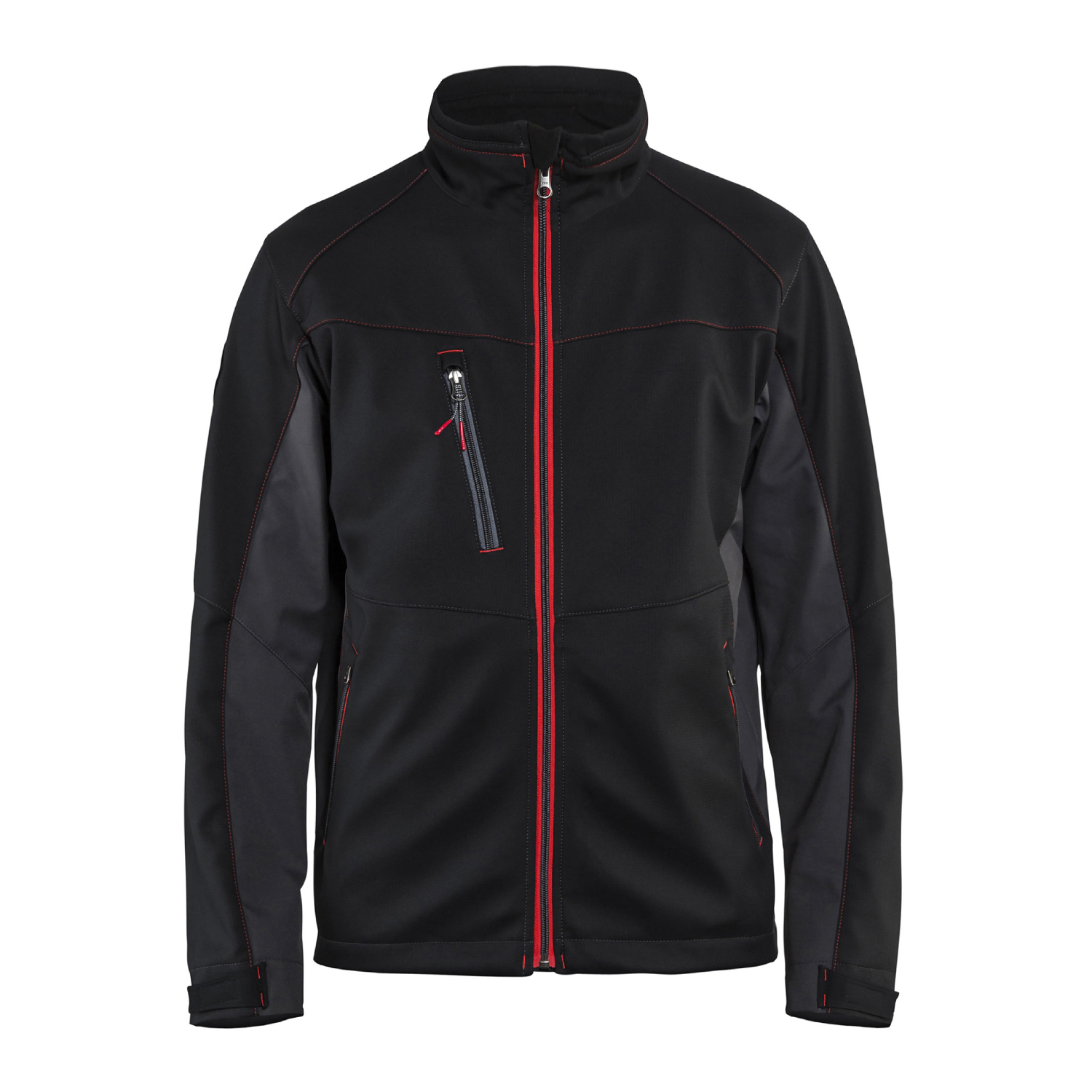 Softshelljacka från Blåkläder i stretchigt och vindavvisande tyg som har hög andningsförmåga. Jackan har förböjda ärmar, förlängd rygg och fleecefodrad krage för optimal komfort. Justerbar i ärmavslut samt nederkant och försedd med flera praktiska fickor.