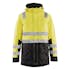 Vinterparkas i varsel från Blåkläder för tuffa arbetsmiljöer där det är viktigt att synas väl. Tillverkad i ett kraftigt vind- och vattentätt material med tejpade sömmar och är försedd med ett varmt quiltfoder som är behagligt och skyddar väl mot kyla och blåst. Slitstarkt ytatyg med mörkare färgfält där plagget utsätts för mest smuts. Försedd med ett tvåvägsblixtlås framtill samt förböjda ärmar för bättre komfort. Midjan justeras med dragsko baktill för bättre passform. Reflexerna är påvärmda för ökad smidighet och den skyddande luvan har tryckknappar för att enkelt ta av och på.