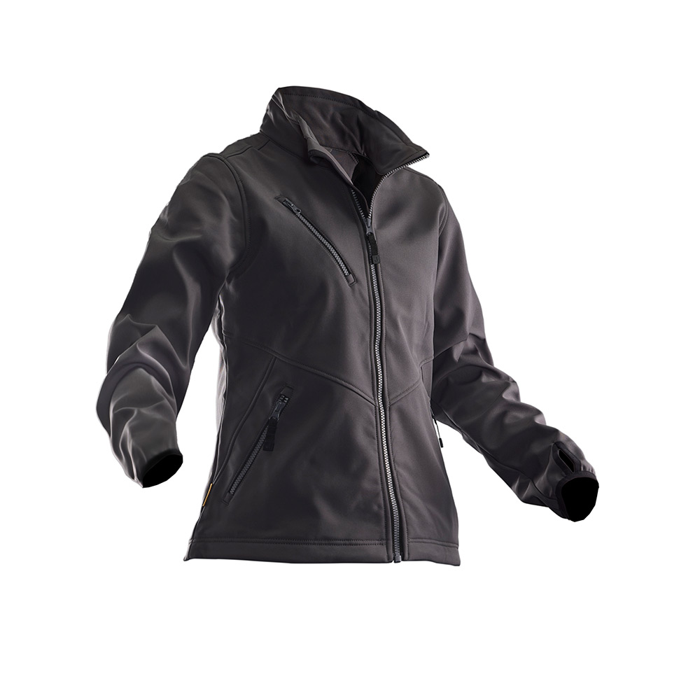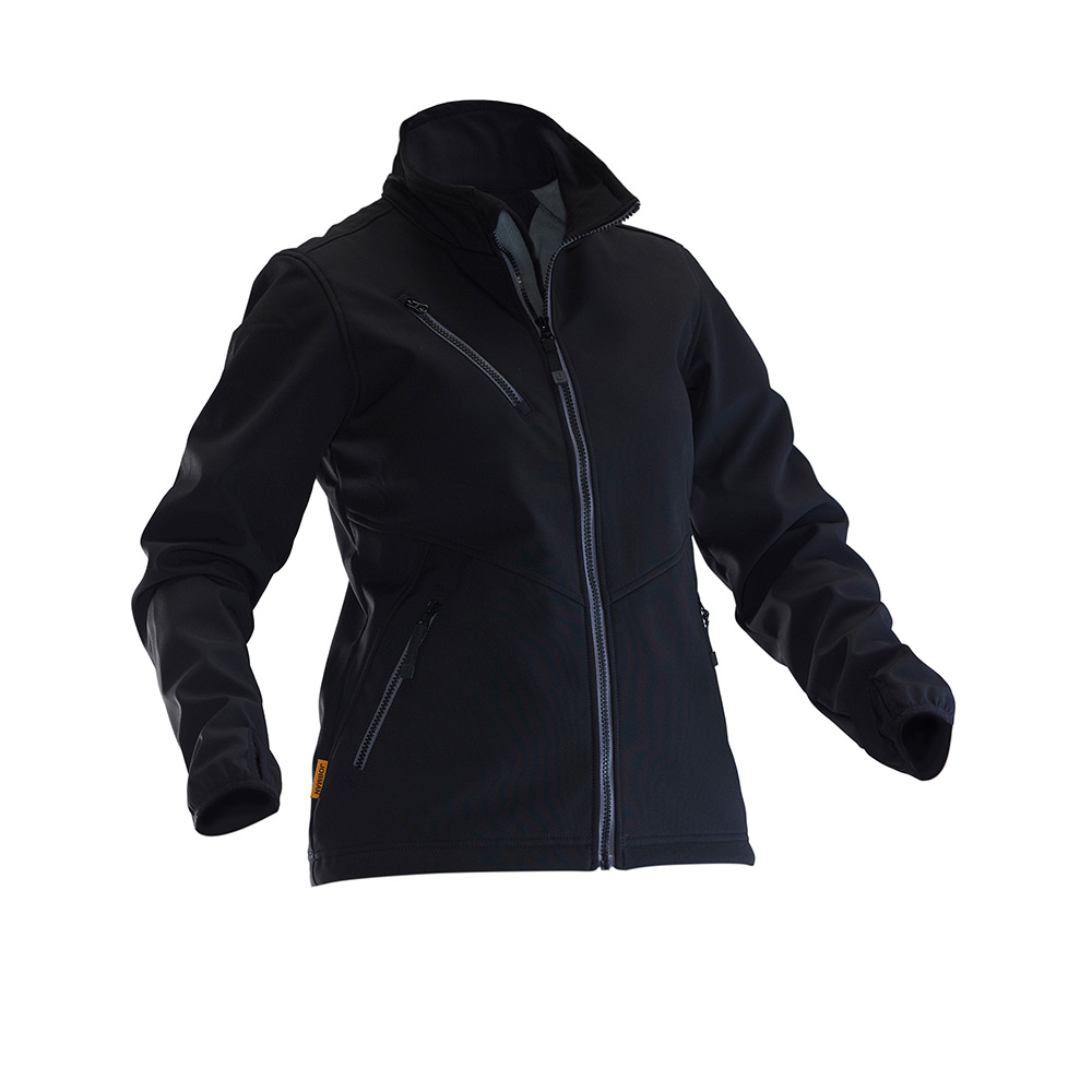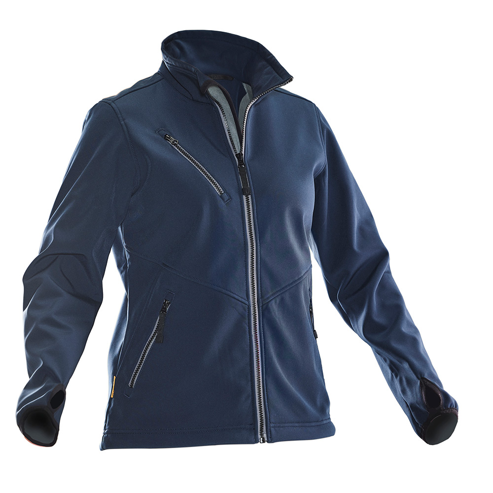 1203 Softshelljacka Dam. Vindtät och vattenavvisande 3-lagers softshell med insida av fleece. Bröstficka med blixtlås och D-ring för id-kortshållare. Rymliga framfickor med blixtlås. Innerfickor. Elastiskt ärmslut med tumgrepp. Reglerbar med dragsko i nederkant. YKK frontblixtlås.