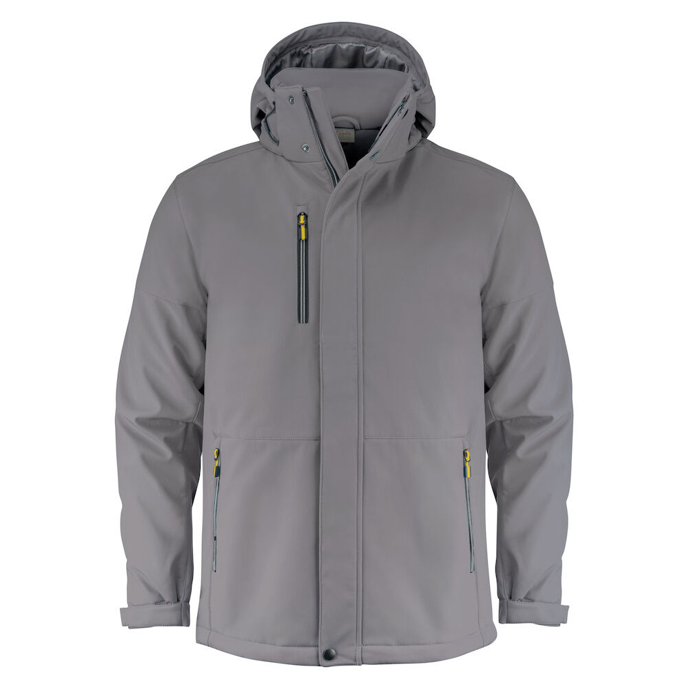 Vadderad softshelljacka med avtagbar huva. Blixtlåsskydd med tryckknappar mitt fram. Dragsko i huva och nederkant samt kardborrejustering i ärmavslut. Två innerfickor med dragkedja. Reflekterande passpoal i nedre ryggen. Avrivbar nacketikett och separat storleksetikett. Tvättchipficka vid inre vänstra sidosömmen. Dragkedja i kontrastfärg. Zip pullers i flera färger säljs separat. Öko-Tex 100-certifierad. Förpackad i en komposterbar påse.