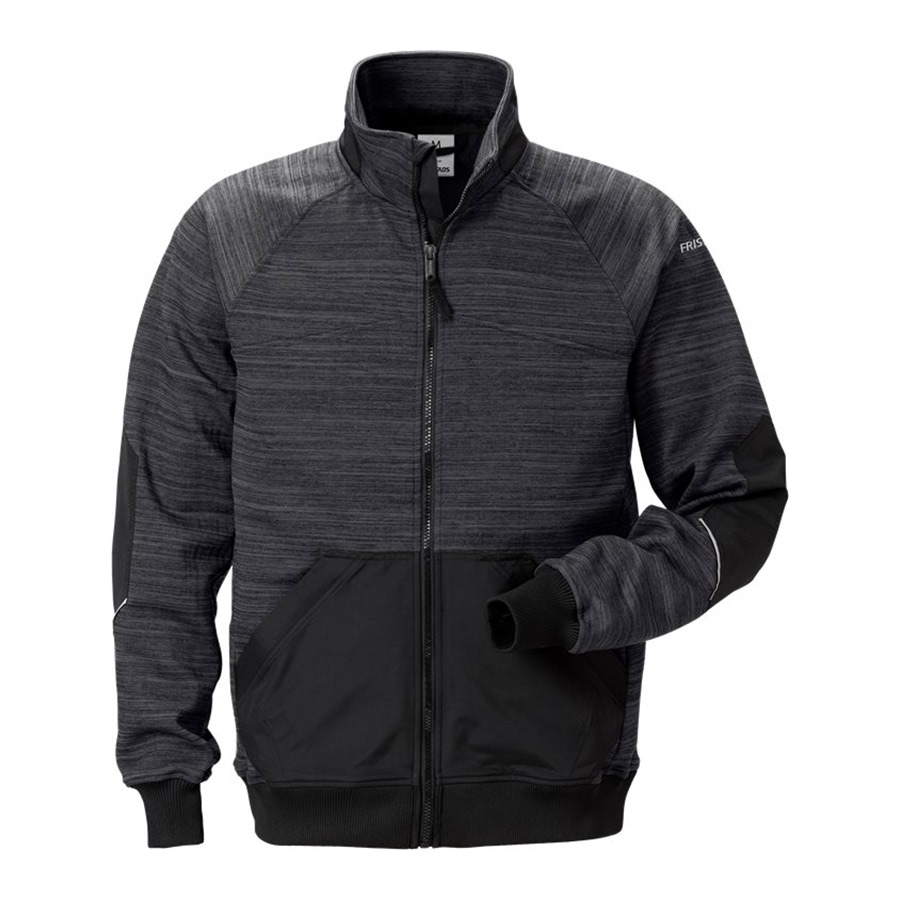 Melerad sweatshirt-jacka med förstärkningar på utsatta partier. Bekväm jacka eller tröja av slitstarkt elastisk material som har reflexdetaljer och rymliga framfickor med dragkedja. Finns i storlekar från 2XS till 4XL och passar bra både för herr och dam.