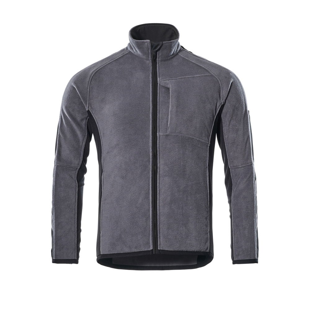 Tvåfärgat. Stängning med blixtlås och invändigt vindfång. Bröstficka med blixtlås. Fickor på framstycket. Innerficka. Ergonomiskt utformade ärmar ger god rörelsefrihet. Ryggen är förlängd. Resår vid handleden och i nederkanten. Reflexeffekter.