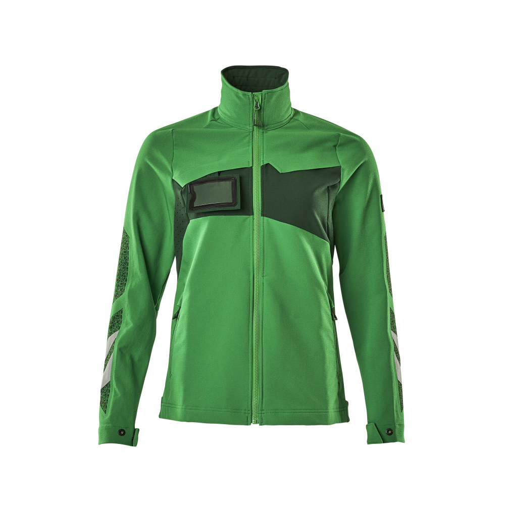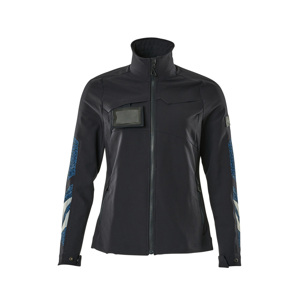 Lady passform. Har en vattenavvisande yta. Ultimate stretchtyg med låg vikt och bra slitstyrka. Stängning med blixtlås och invändigt vindfång. Bröstficka med blixtlås. ID-kortshållaren är avtagbar. Framfickor med blixtlås. Tryckknappsjustering vid handleden och i nederkanten. Med tryck och reflexer.