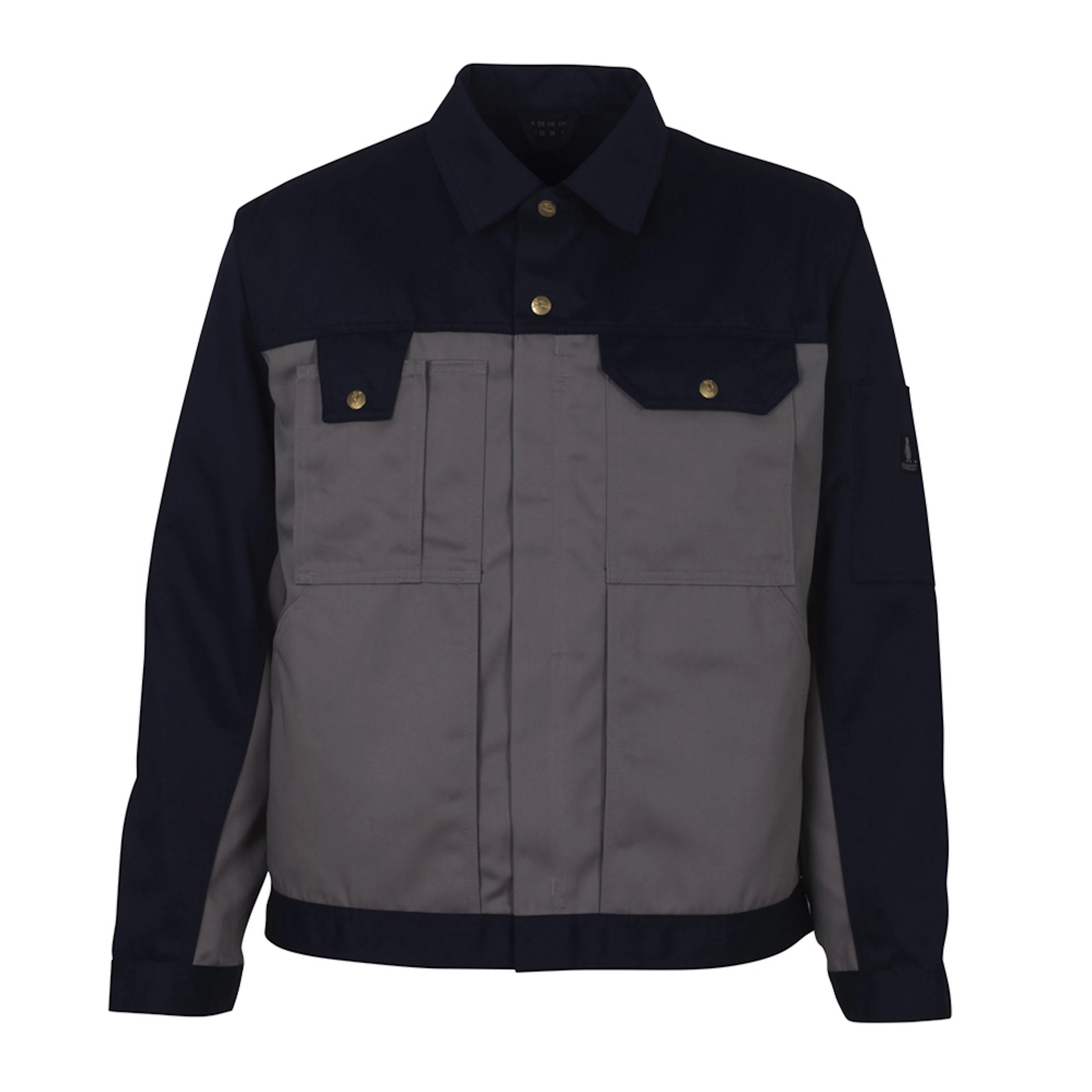 Tvåfärgat. Tvånålsstickningar på ärmar och trenålsstickningar i sidan. Stängning med blixtlås och vindskydd med tryckknappar. Bröstficka med lock och tryckknapp. Telefonbröstficka med justerbart lock och pennficka. Fickor på framstycket. Innerficka med blixtlås. Ärmficka med kardborreband. Linning med tryckknappjustering. Manschetter med tryckknappsjustering. Veck i ryggen. Ventilation under ärmarna.
