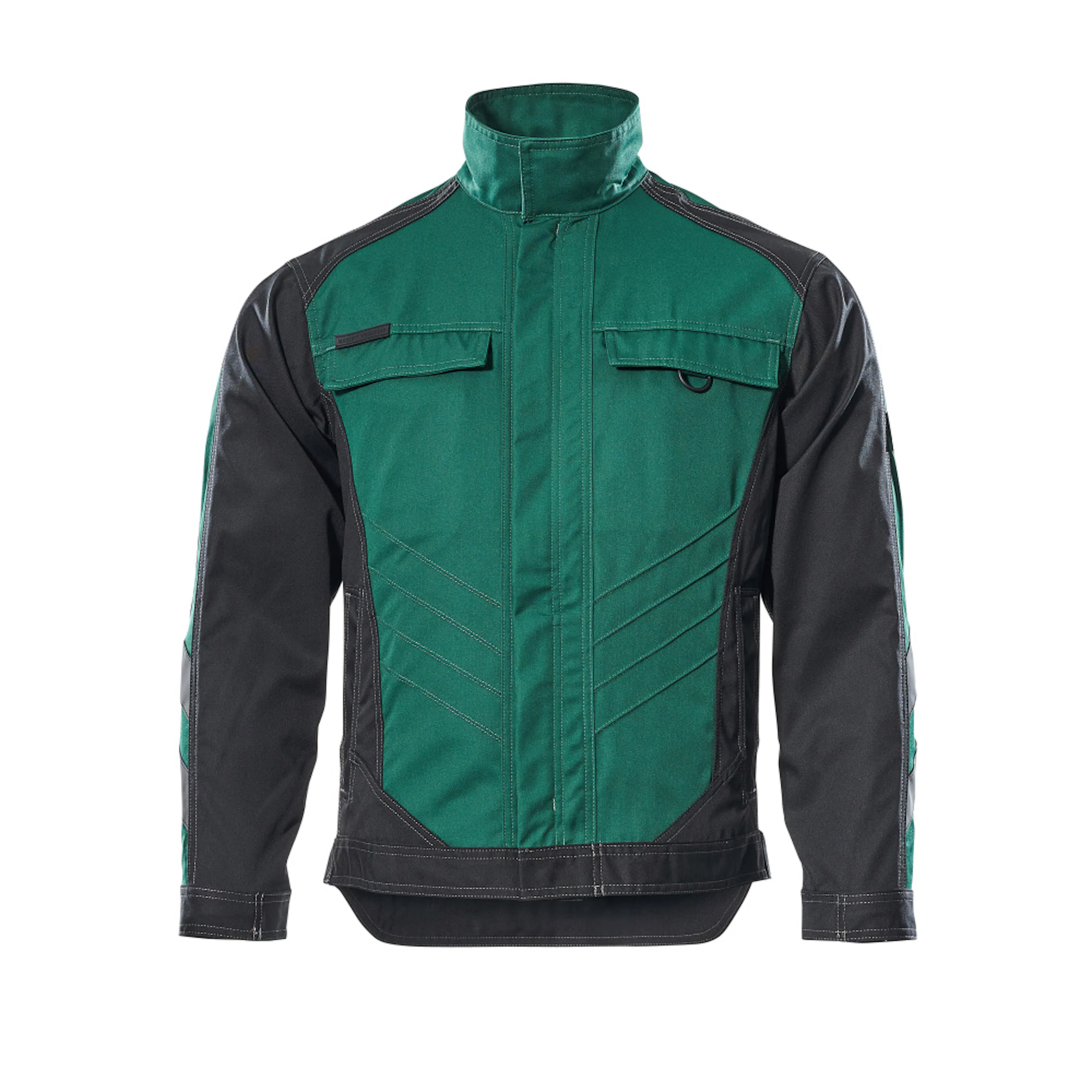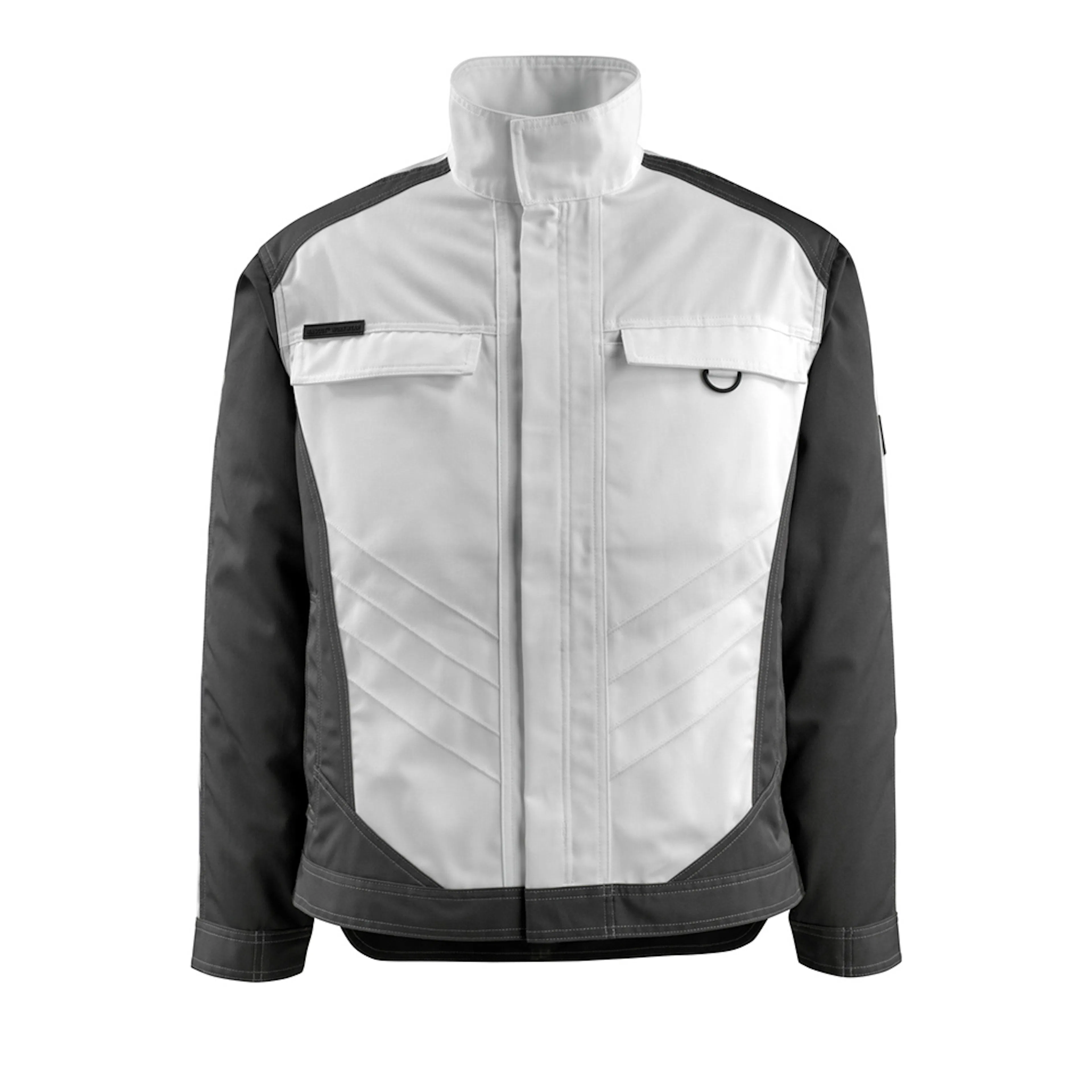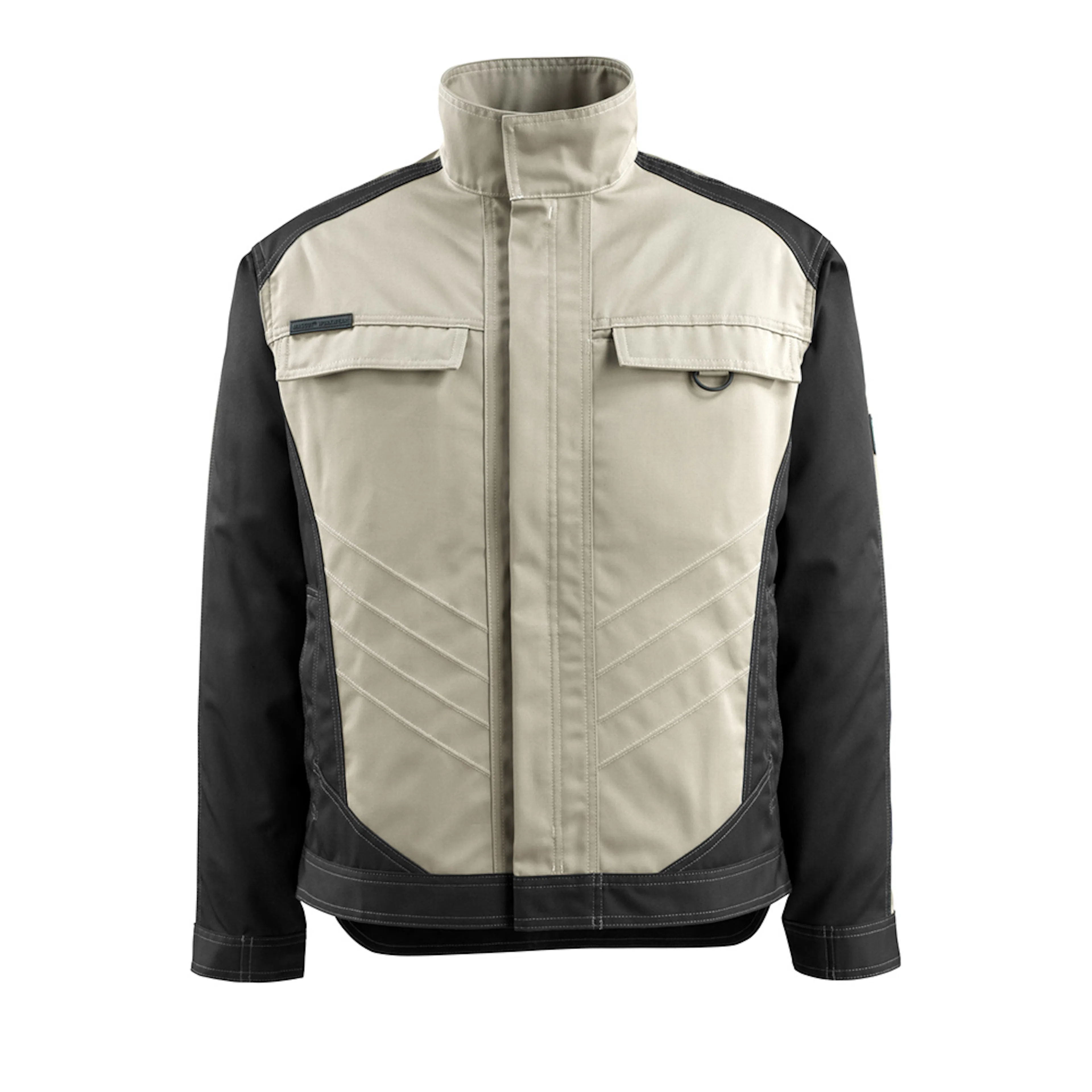 Tvåfärgat. Metervaran är lätt. Trenålsstickningar på ärmar och i sidan. Hög krage. Stängning med blixtlås, vindskydd och dolda tryckknappar. Ryggen är förlängd. Bröstfickor med lock och dolda tryckknappar. Fickor på framstycket. D-ring. Ergonomiskt utformade ärmar ger god rörelsefrihet. Innerfickor. Linning med tryckknappjustering. Manschetter med tryckknappsjustering. Kontrastsömmar. Reflexeffekter.