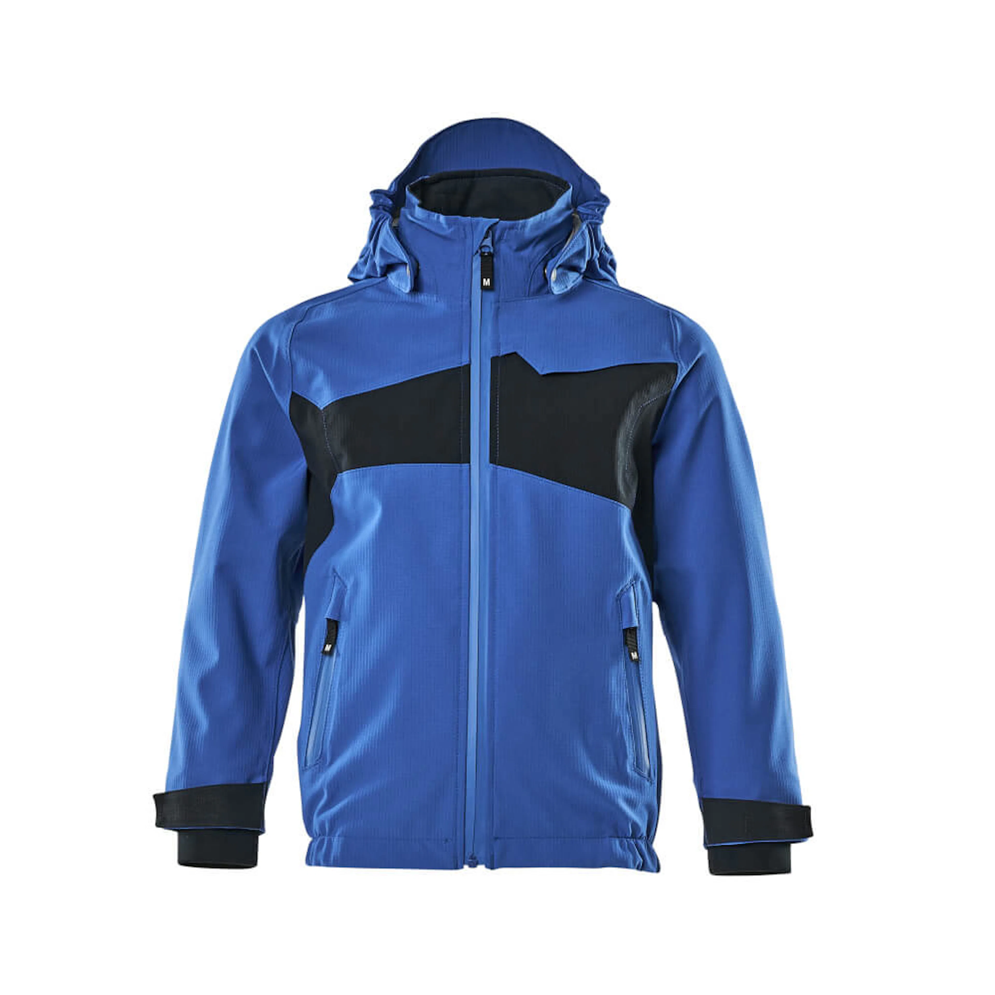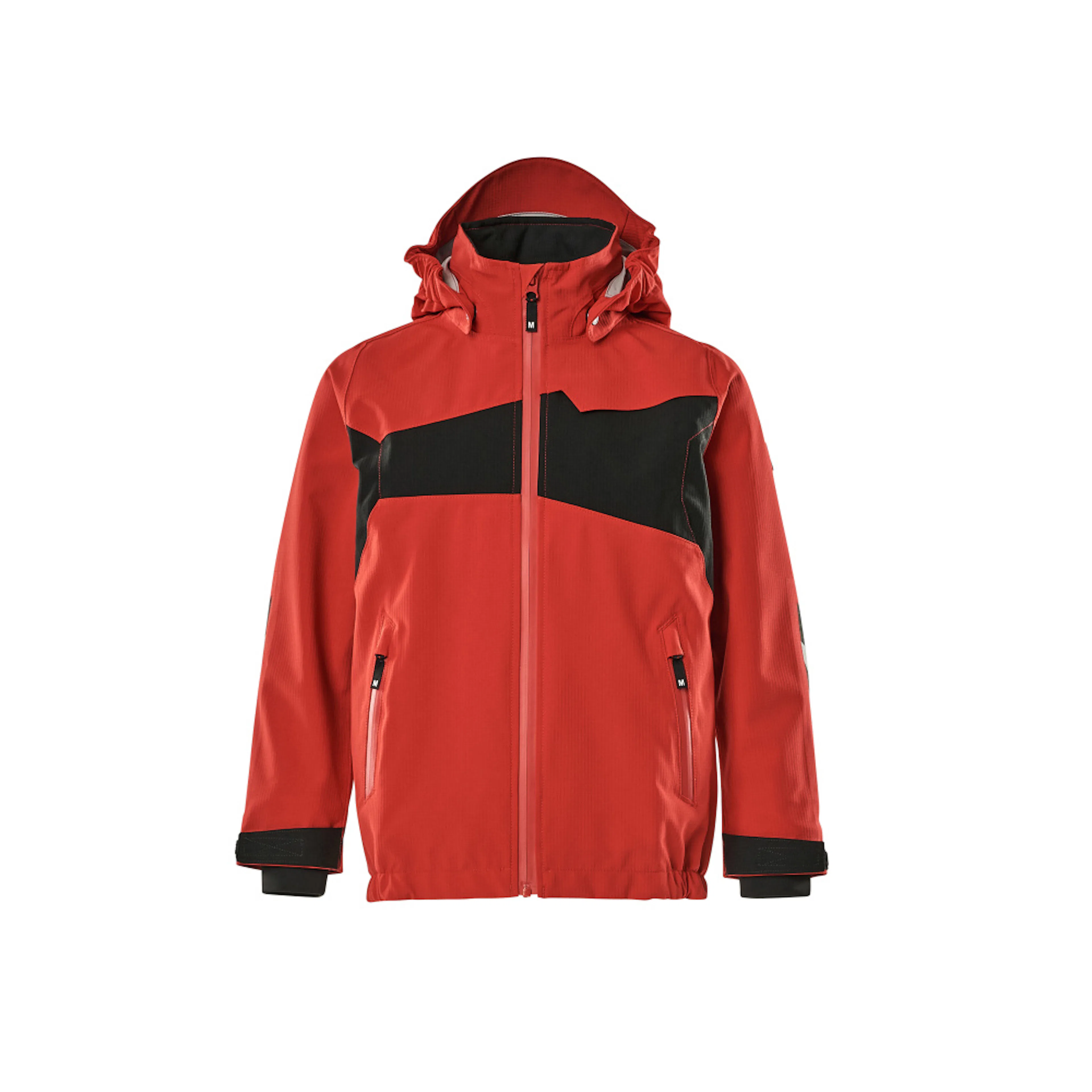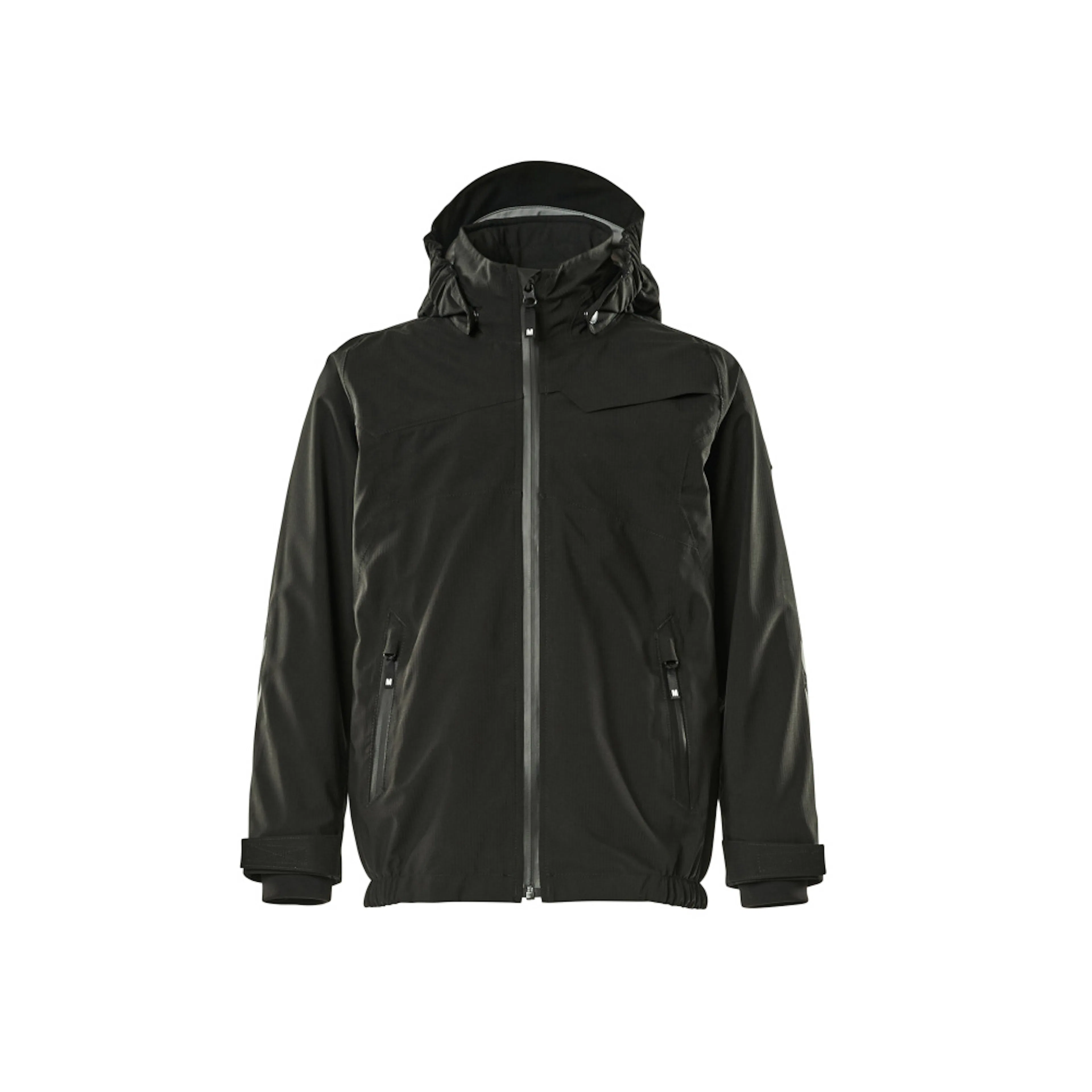 Metervaran är lätt. Vindtätt och vattenavvisande. Sömmarna är tejpade. Avtagbar fodrad huva med resår. Stängning med blixtlås och invändigt vindfång. Framfickor med blixtlås. Ribbstickning vid handleden (dold i vindskyddet). Med tryck och reflexer.