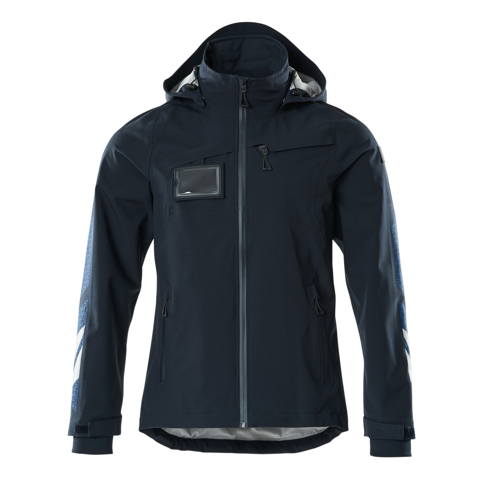 Metervaran är lätt. Vindtätt och vattenavvisande. Sömmarna är tejpade. Huvan är avtagbar, fodret har justerbart resårsnöre. Stängning med blixtlås och invändigt vindfång. Innerficka med blixtlås. ID-kortshållaren är avtagbar. Bröstficka med blixtlås. Framfickor med blixtlås. Resårkanten i nederkanten är reglerbar. Ribbstickning vid handleden (dold i vindskyddet). Med tryck och reflexer.