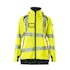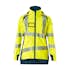 Lady passform. Fluorescerande med lodräta och sneda tvärgående reflexer. Tvåfärgat. Hög andningsbarhet samt vind- och vattentät. Sömmarna är tejpade. Huvan är avtagbar, fodret har justerbart resårsnöre. Reglerbar metalltråd i båda sidorna av huvan. Stängning med vattentätt blixtlås och invändigt vindfång. Innerfickor - två med blixtlås och en öppen nätficka. ID-kortshållaren är avtagbar. Bröstficka med vattentätt blixtlås. Framfickor med vattentäta blixtlås. Hög krage. Ribbstickning i nedre kanten på framsidan av jackan. Extra tyg nederst på ryggen kan vikas ned med knappar och ge extra längd baktill och därmed extra skydd mot väder och vind. Ribbstickning vid handleden (dold i vindskyddet). Resår vid handleden. Med tryckeffekter.