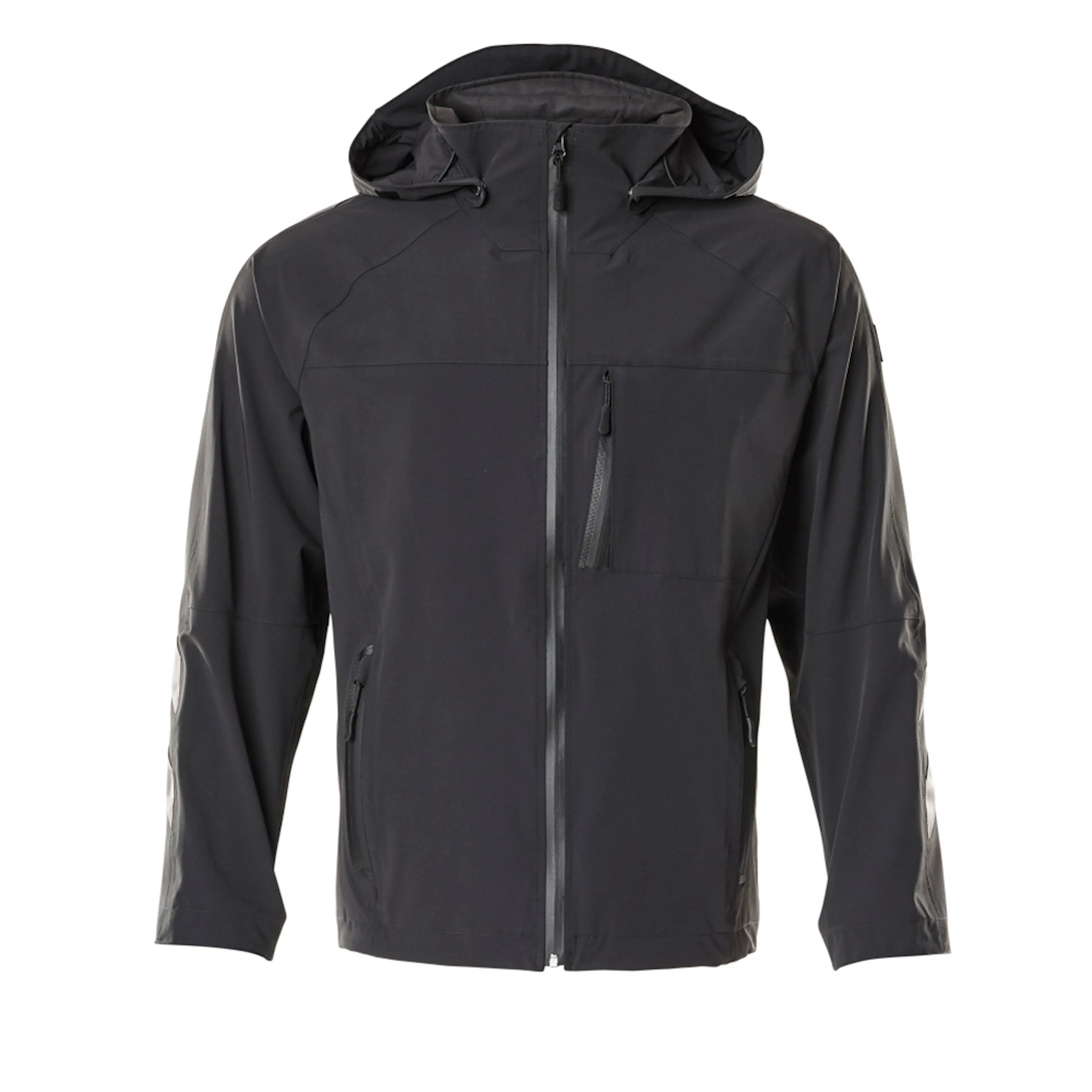 Ultimate stretchtyg med låg vikt och hög slitstyrka. Andas, vind- och vattentät. Sömmarna är tejpade. Stängning med vattentätt blixtlås och invändigt vindfång. Huvan är avtagbar, fodret har justerbart resårsnöre. Bröstfickor med blixtlås. Ergonomiskt utformade ärmar ger god rörelsefrihet. Framfickor med blixtlås. Ryggen är förlängd. Resårkanten i nederkanten är reglerbar. Ribbstickning vid handleden (dold i vindskyddet). Reflexeffekter.