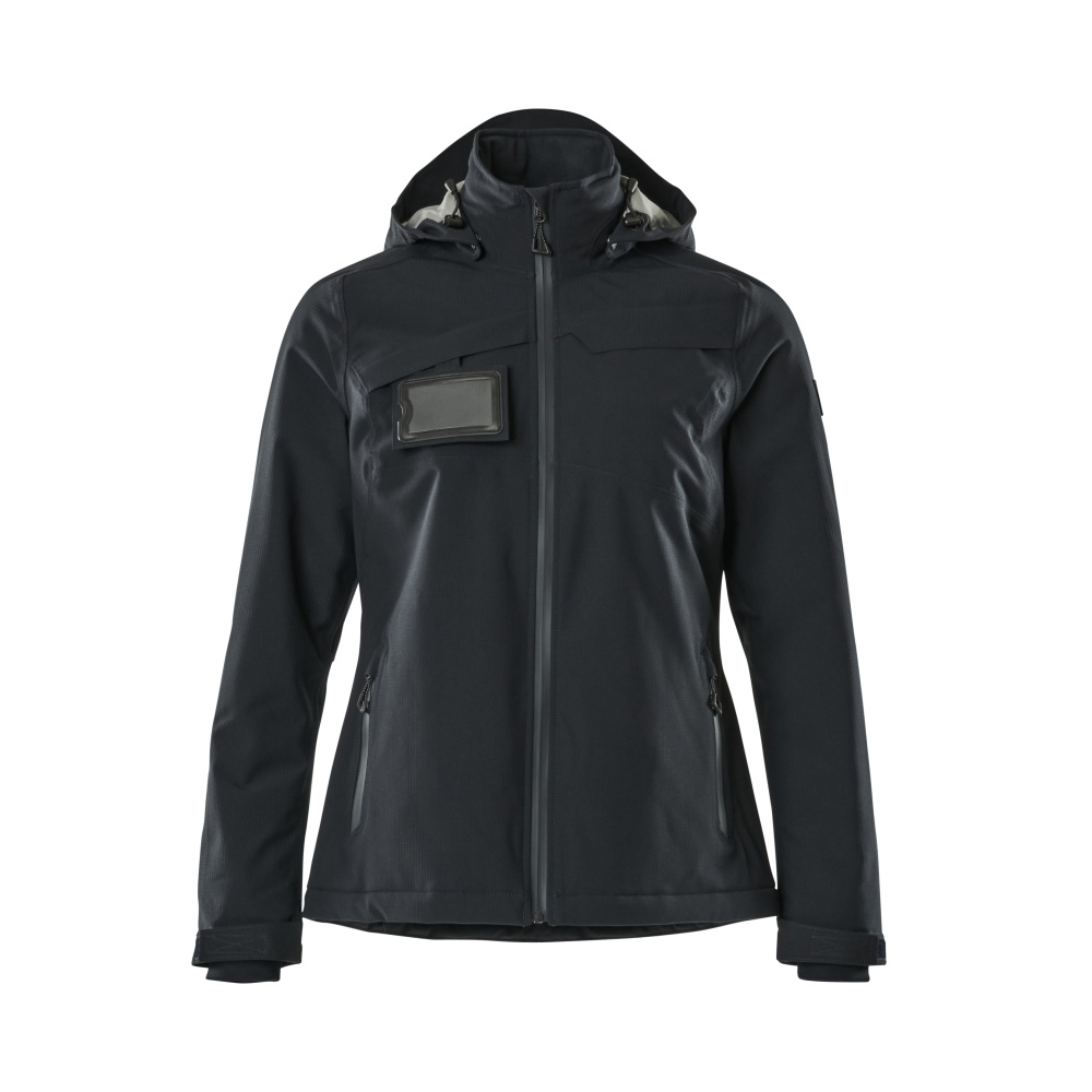 Lady passform. Metervaran är lätt. Andas, vind- och vattentät. Sömmarna är tejpade. Med CLIMASCOT® Lightweight Insulation. Huvan är avtagbar, fodret har justerbart resårsnöre. Stängning med blixtlås och invändigt vindfång. Innerficka med blixtlås. ID-kortshållaren är avtagbar. Framfickor med blixtlås. Resårkanten i nederkanten är reglerbar. Blixtlås nederst på ryggen, invändigt, för användning vid tryck/broderi. Ribbstickning vid handleden (dold i vindskyddet). Med tryck och reflexer.