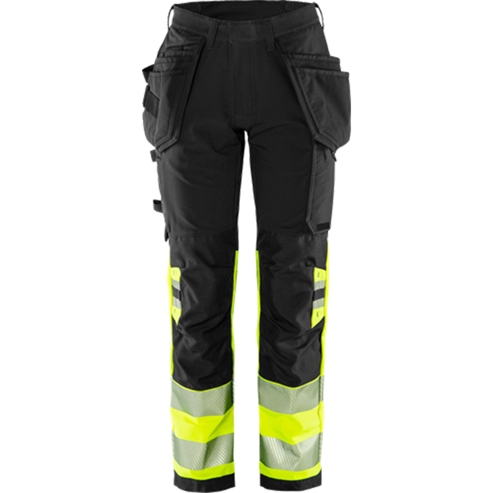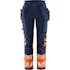 Varsel Green hantverkarbyxa stretch 2663 GSTP klass 1, dam. Delvis biobaserat och återvunnet material / Miljödeklarerad (EPD) / 4-vägs stretchmaterial / Ribbstickade stretchpartier i midjan / Slitstarkt ripstop-material med 4-vägsstretch på stuss och baksida lår / Dold knapp fram / 2 löst hängande CORDURA®-förstärkta spikfickor – den ena med ficka med dragkedja, 3 mindre fickor och verktygshällor, den andra med extra ficka / D-ring under spikfickan / 2 framfickor / 2 bakfickor med lös botten, varav en med dragkedja / Dubbel förstärkt grensöm / Hammarhank / CORDURA®-förstärkt tumstocksficka med verktygsficka, pennficka samt knapp och hälla för kniv / Benficka med tryckknapp, ficka med dragkedja och D-ring / Knäfickor i CORDURA® med öppning inifrån / Knäskydden i knäfickorna kan höjdjusteras / CORDURA®-förstärkt benslut / Dold kängkrok / Godkänd enligt EN ISO 20471 klass 1, EN 14404 tillsammans med knäskydd 124292 och EN 13758-2 UPF 40+ UV-skydd / Godkänd efter 50 tvättar / EPD reg.nr 4489 på environdec.com / OEKO-TEX®-certifierad.