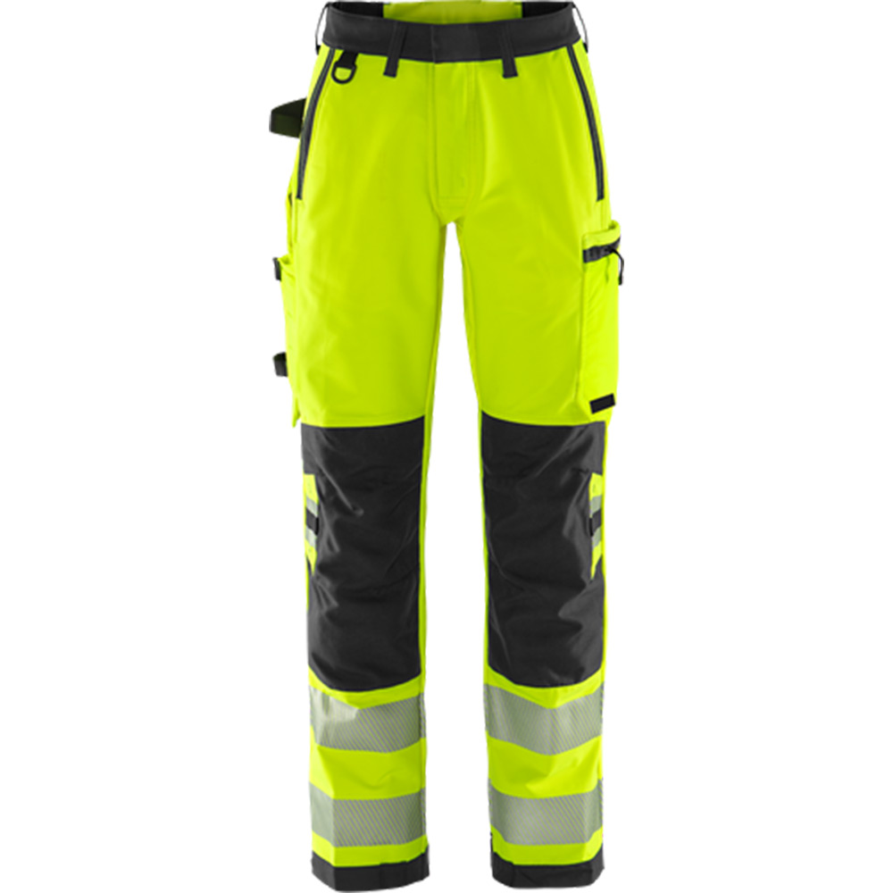 Varselbyxa Green stretch 2665 GSTP klass 2, dam. Delvis biobaserat och återvunnet material / Miljödeklarerad (EPD) / 4-vägs stretchmaterial / Ribbstickade stretchpartier i midjan / Slitstarkt ripstop-material med 4-vägsstretch på stuss och baksida lår / Dold knapp fram / D-ring / 2 framfickor / 2 bakfickor med lös botten, varav en med dragkedja / Dubbel förstärkt grensöm / Hammarhank / CORDURA®-förstärkt tumstocksficka med verktygsficka, pennficka samt knapp och hälla för kniv / Benficka med tryckknapp, ficka med dragkedja och D-ring / Knäfickor i CORDURA® med öppning inifrån / Knäskydden i knäfickorna kan höjdjusteras / CORDURA®-förstärkt benslut / Dold kängkrok / Godkänd enligt EN ISO 20471 klass 2, EN 14404 tillsammans med knäskydd 124292 och EN 13758-2 UPF 40+ UV-skydd / Färg 271 godkänd enligt RIS-3279-TOM för brittisk järnväg / Godkänd efter 50 tvättar / EPD reg.nr 3888 på environdec.com / OEKO-TEX® certifierad.