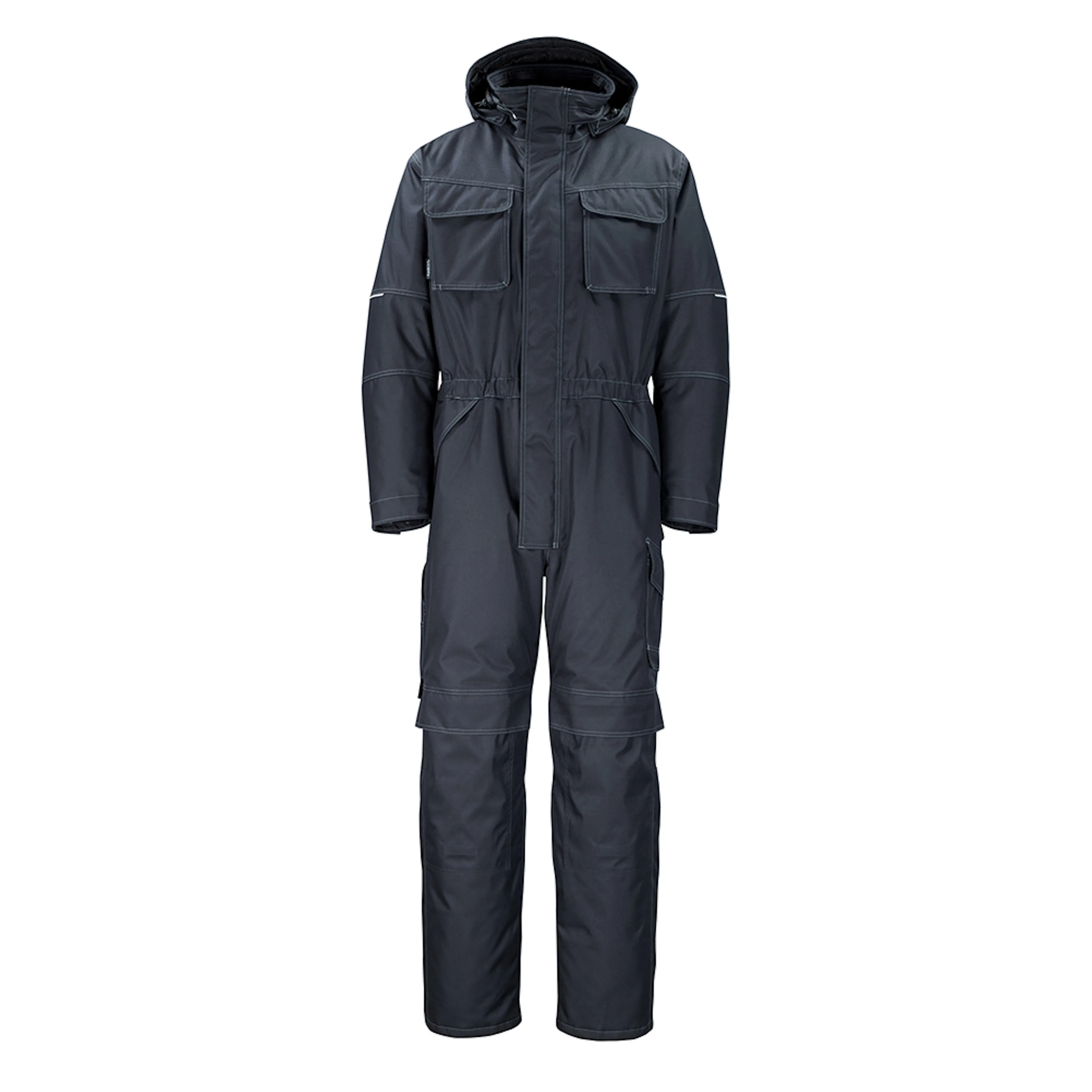 Andas, vind- och vattentät. Sömmarna är tejpade. Tvånålsstickningar på benen och i grenen. Huvan är avtagbar, fodret har justerbart resårsnöre. Pälsfoder på fram- och bakstycke. Quiltfoder i ben och ärmar. Innerkrage av resår. Stängning med blixtlås, vindskydd och dolda tryckknappar. Bröstfickor med lock och dolda tryckknappar. D-ring. Innerficka med blixtlås. Framfickor med vindskydd. Strechtyg (dolt) i ryggen. Bakfickor med förstärkningar och dolda tryckknappar. Hammarstropp. Benficka med lock och tryckknapp. Tumstocksficka. Blixtlås med vindskydd på yttersidan av underbenen. Knäfickorna är justerbara och har lock öppning upptill. Ergonomiskt utformade ärmar ger god rörelsefrihet. Ribbstickning (dold i vindskyddet) och tryckknappar vid handleden. Reflexeffekter.