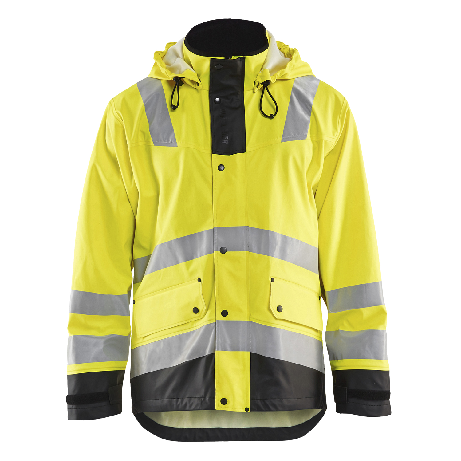 Regnjacka från Blåkläder som passar dig med arbetsuppgifter som kräver ett lätt och smidigt regnplagg. Den är vind- och vattentät och har svetsade sömmar samt avtagbar, justerbar luva. Jackan har uppknäppbar droppkant nedtill med avrinning bak och är försedd med lättåtkomliga framfickor, varav en med D-ring.