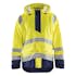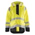 Lätt regnjacka från Blåkläder i varsel som ger dig hög visibilitet på arbetsplatsen när blött väder och dålig sikt kan göra arbetsförhållandena besvärliga. Tillverkad i starkt och tåligt material som är vind- och vattentätt med svetsade sömmar. Jackan har förlängd rygg och justerbar nederkant samt lättåtkomliga framfickor med lock och ärmavsluten med velcro.