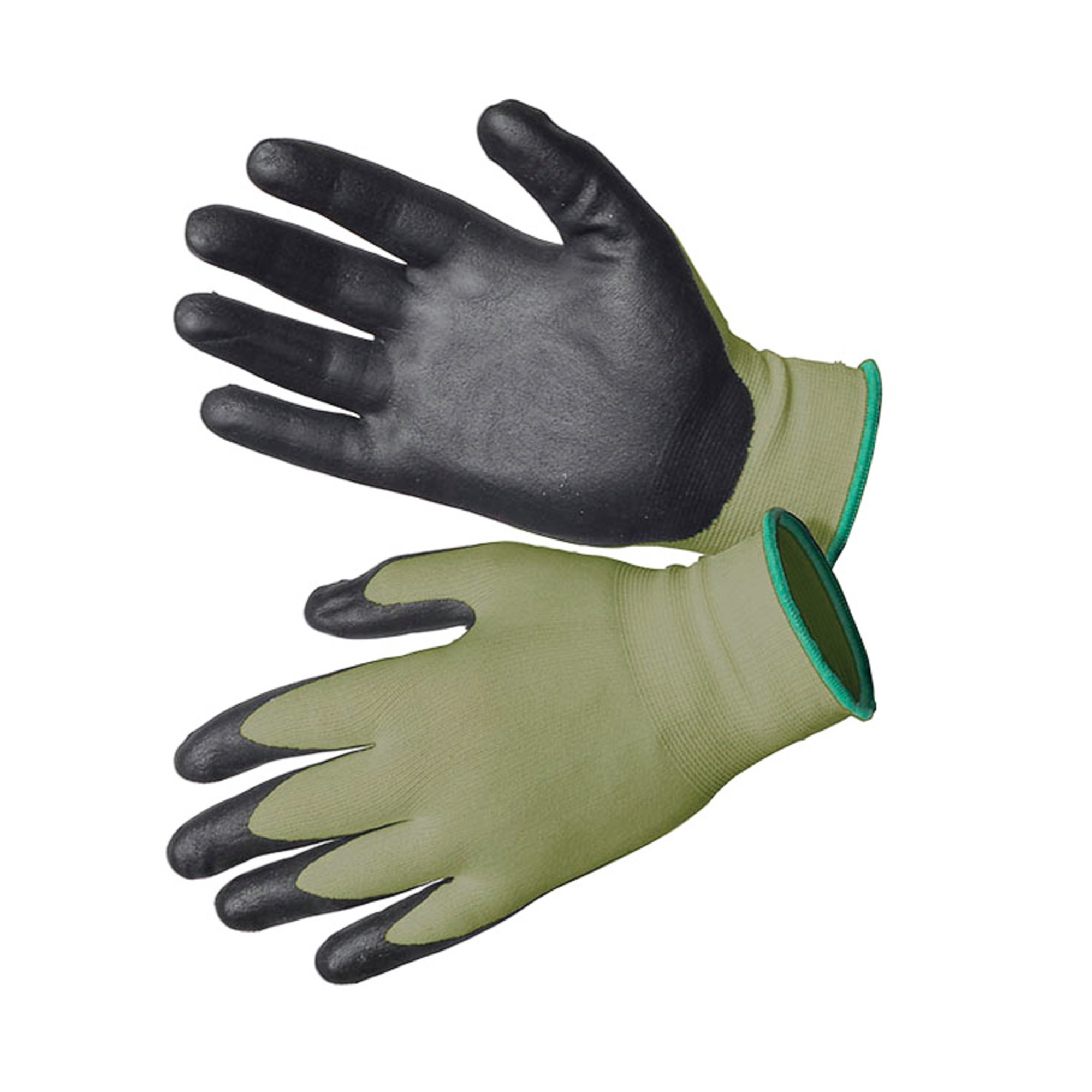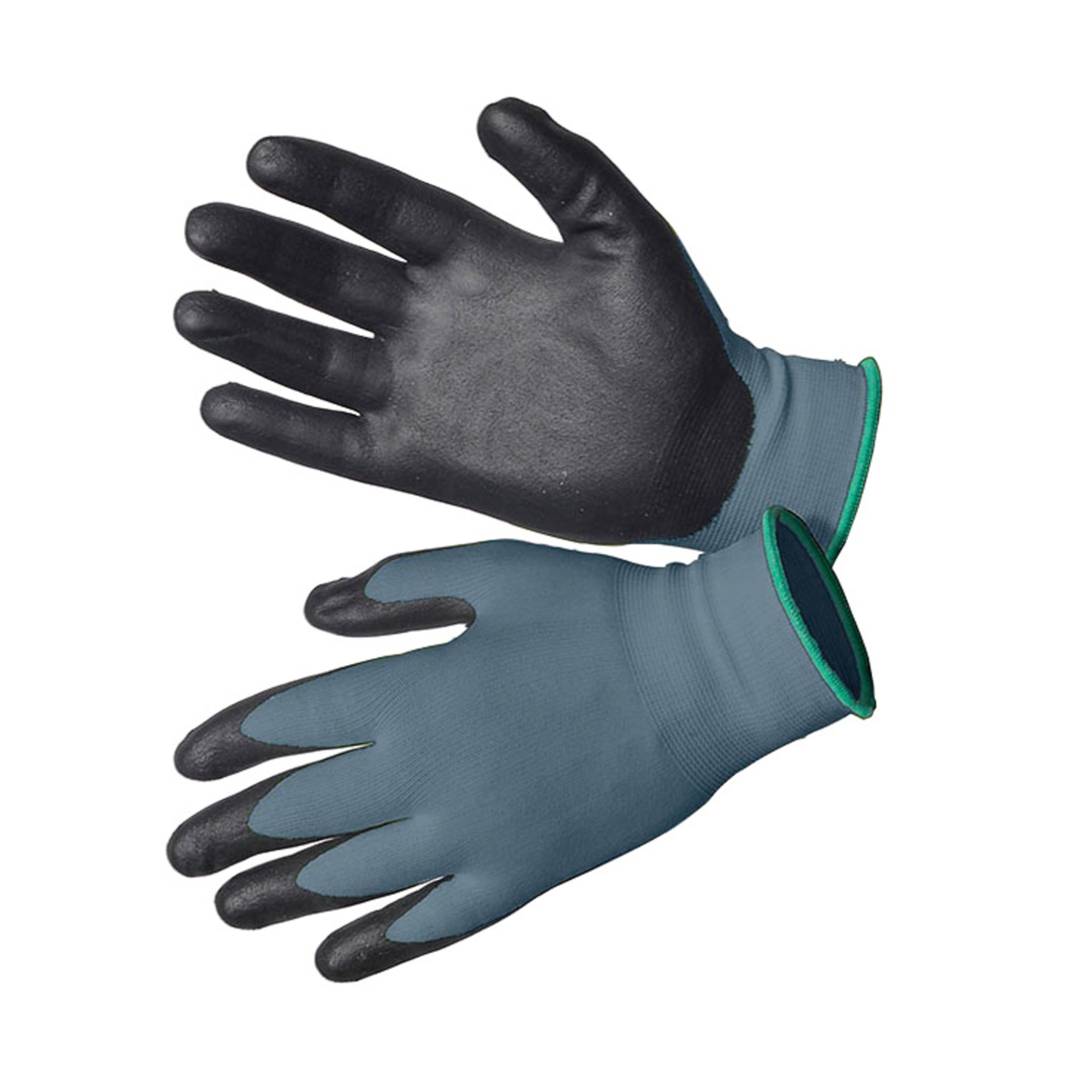 Tätstickad handske av återvunnen polyester (vattenflaskor) och spandex, med nitrildoppning i innerhand och på fingertoppar. En mycket smidig handske med ett bra grepp.