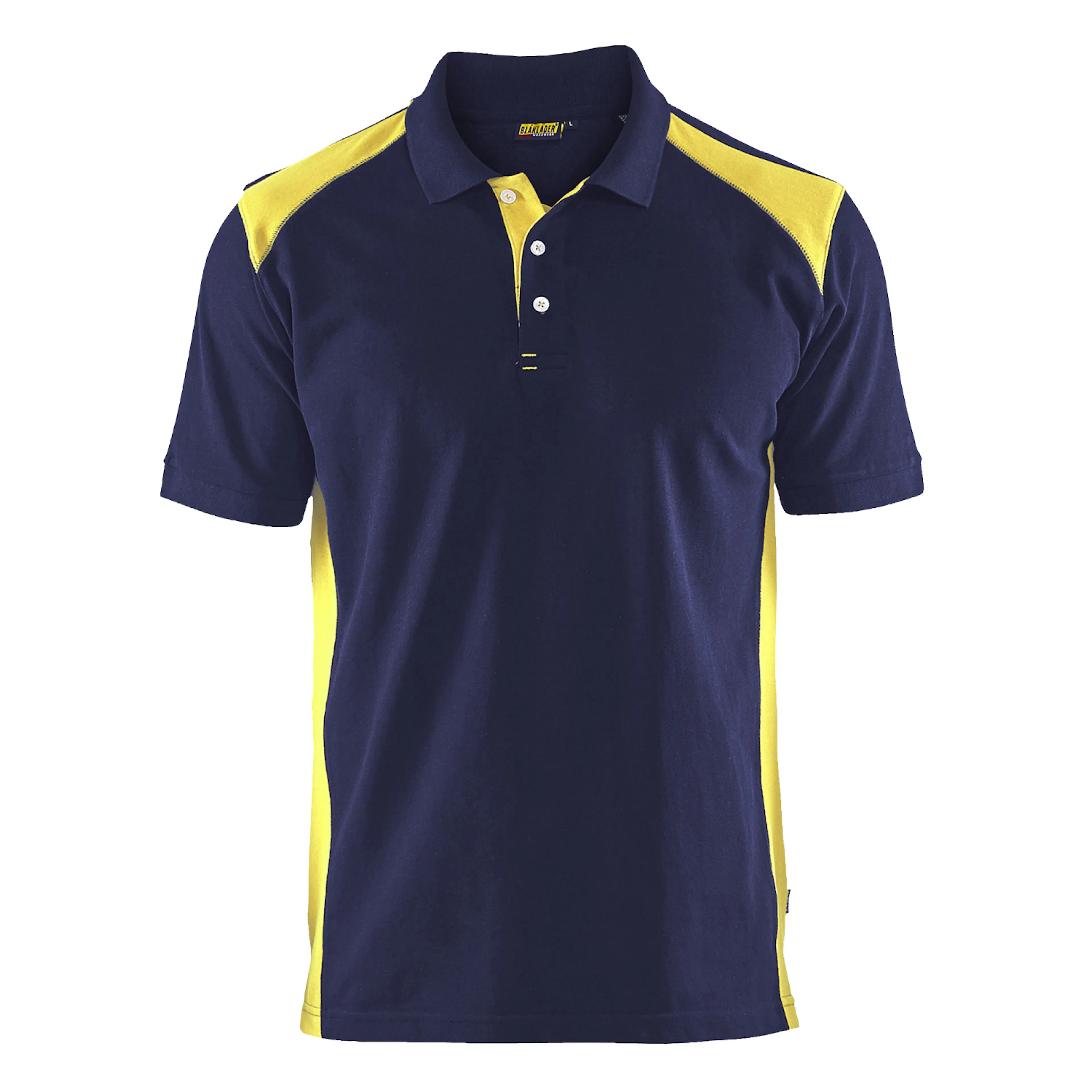 Pikétröja från Blåkläder med ribbstickad krage, förstärkt nack- och axelsöm samt slits i sidan.