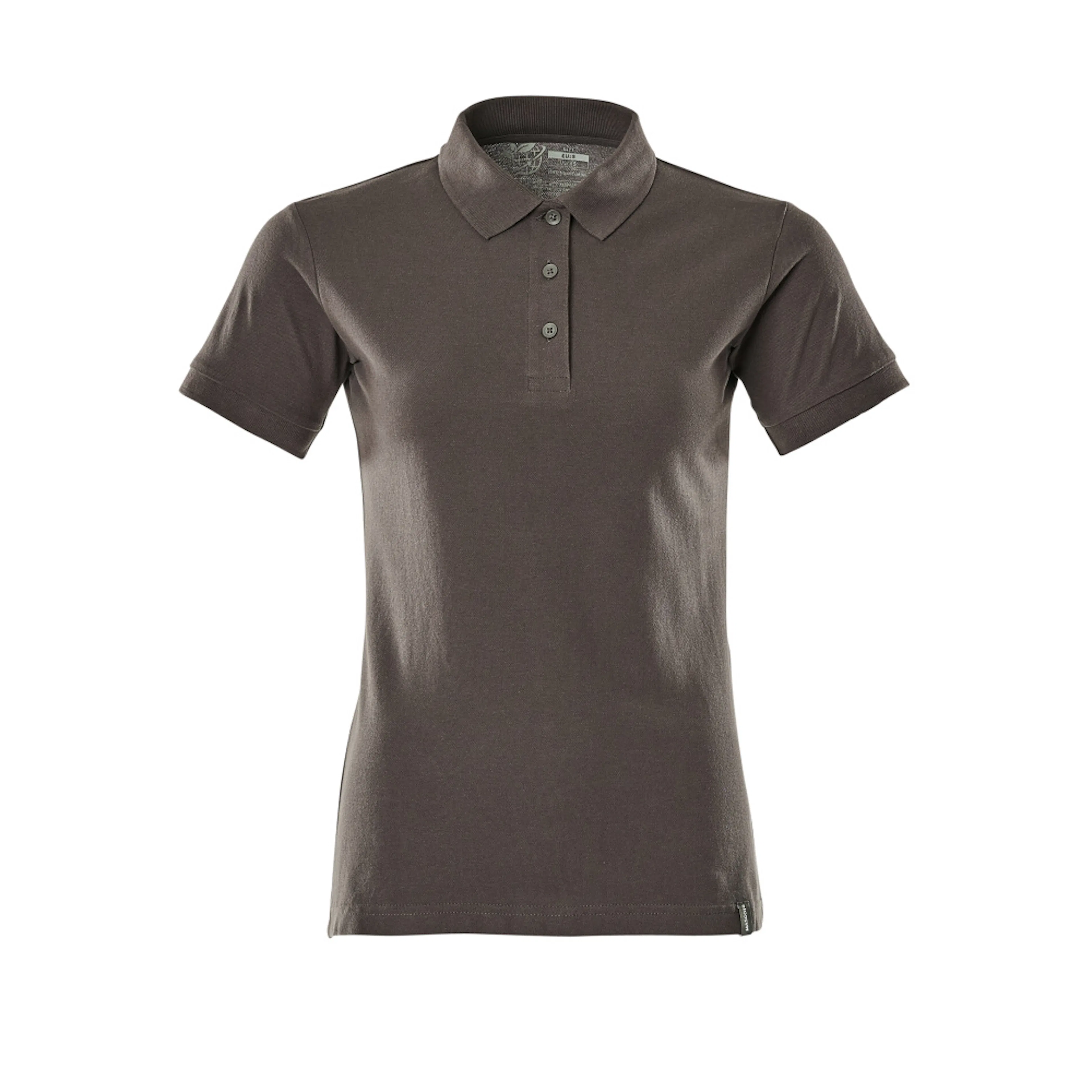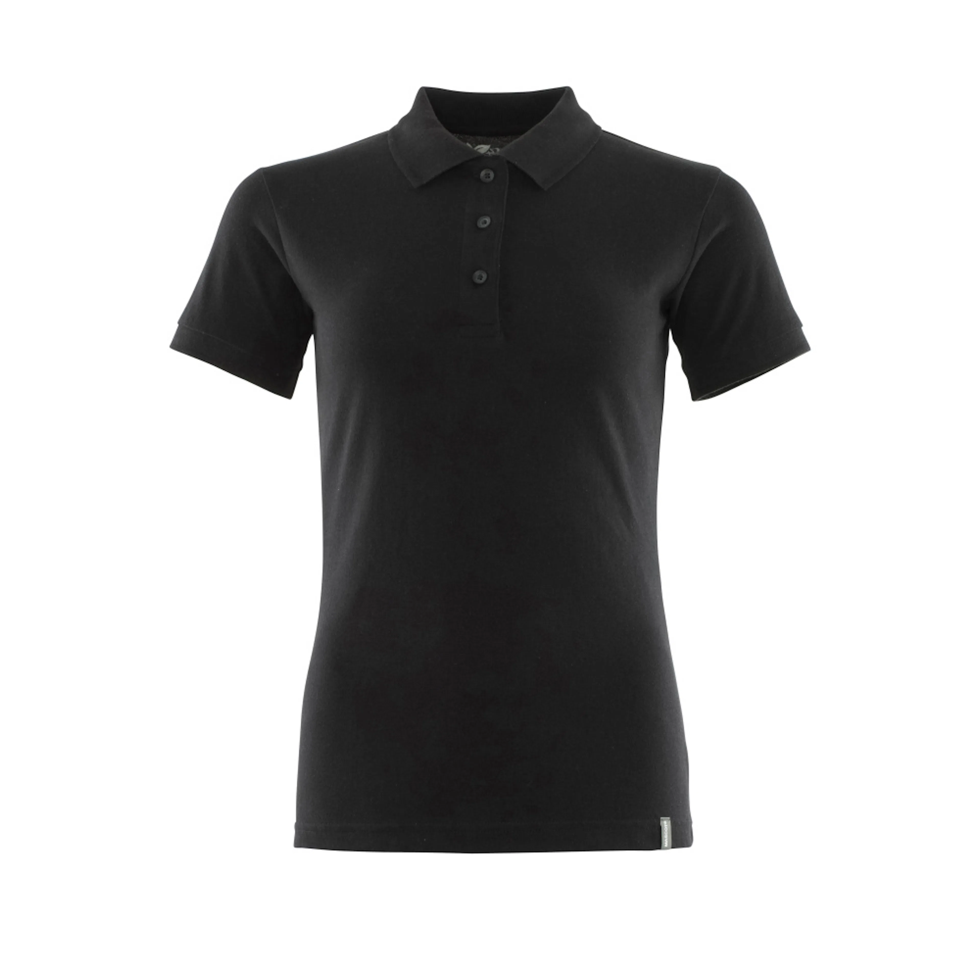 Lady passform. Tillverkad av hållbara material. Ribbstickning i kragen. Slå med knappar. Nackband.