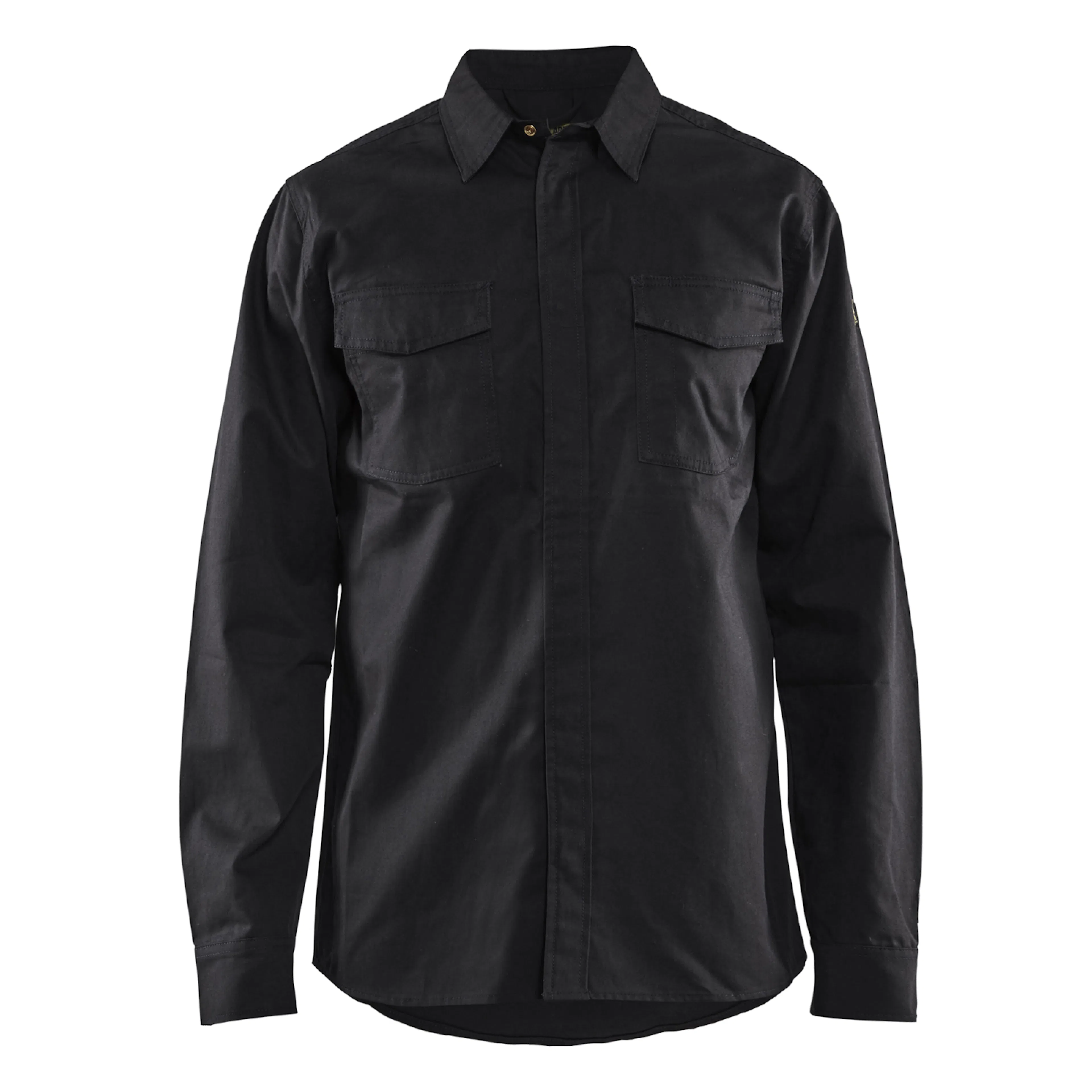 Flamskyddad skjorta från Blåkläder i smart och funktionell design med dolda knappar framtill och quick release-funktion. Materialet är komfortabelt med behaglig passform och god rörlighet.