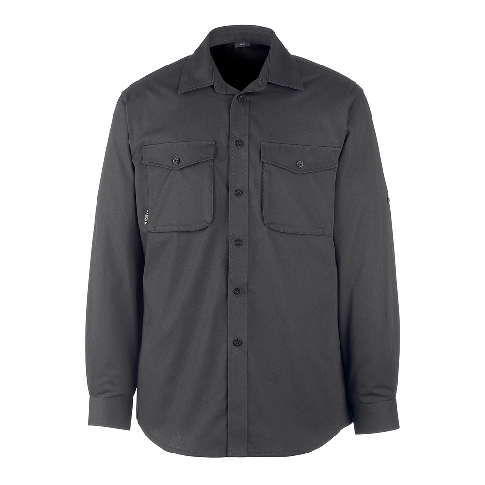 Modern, mer kroppsnära passform med riktigt bra rörelsefrihet. Slå med knappar. Krage med dold knapp som håller kragen på plats. Ärmar kan vikas upp och fästas med knapp. Förstärkta ärmslitsar. Justerbar vid handleden. Tyget tål industritvätt.