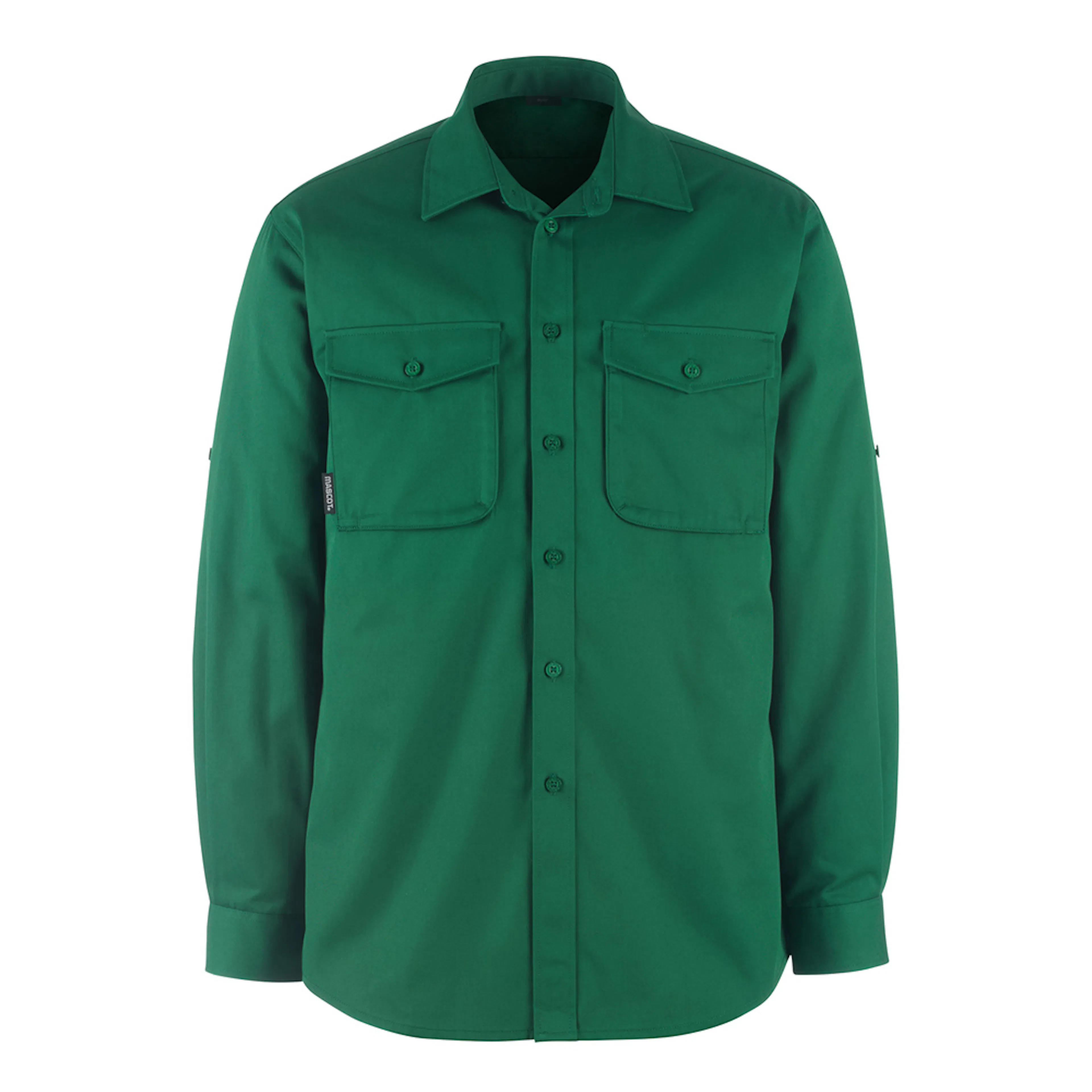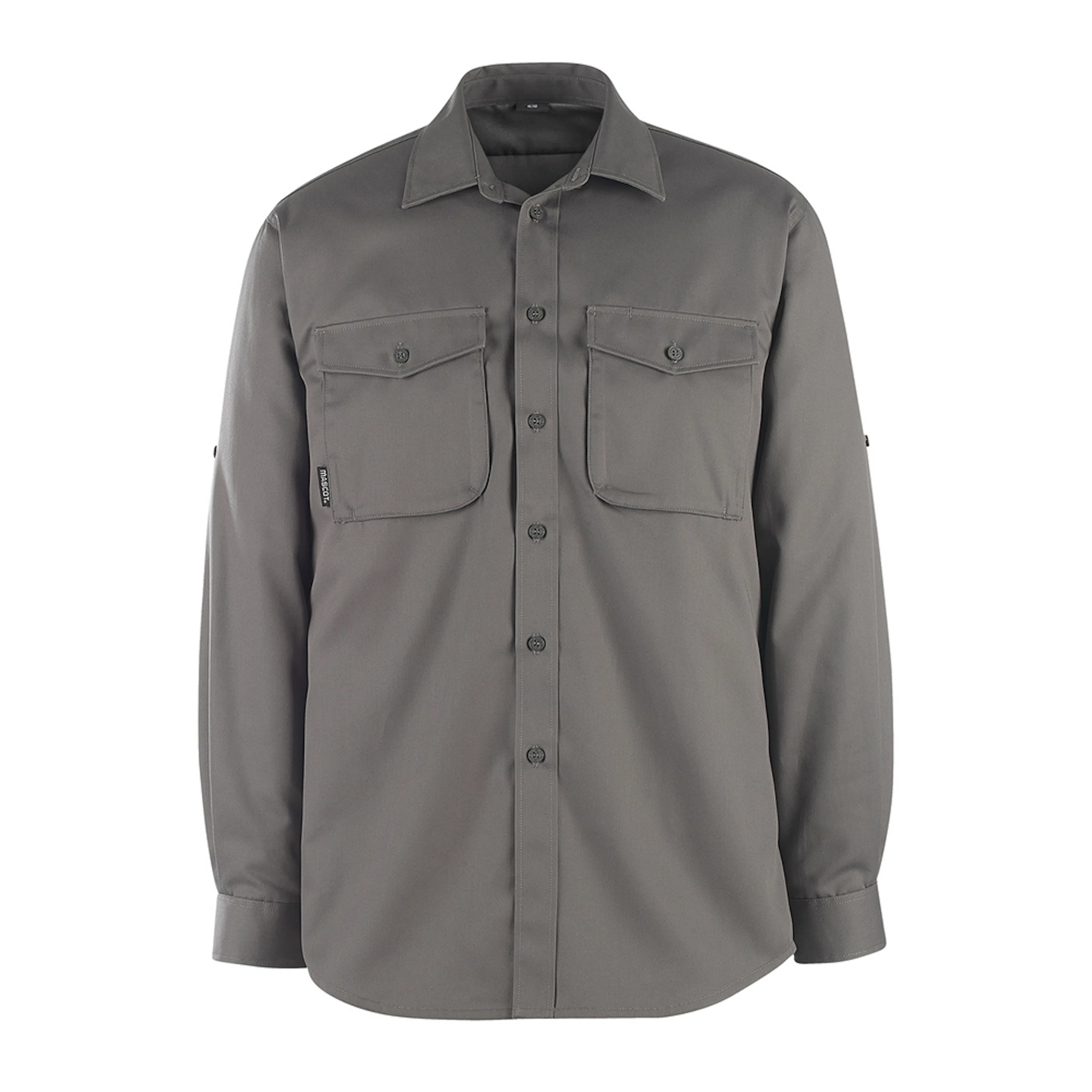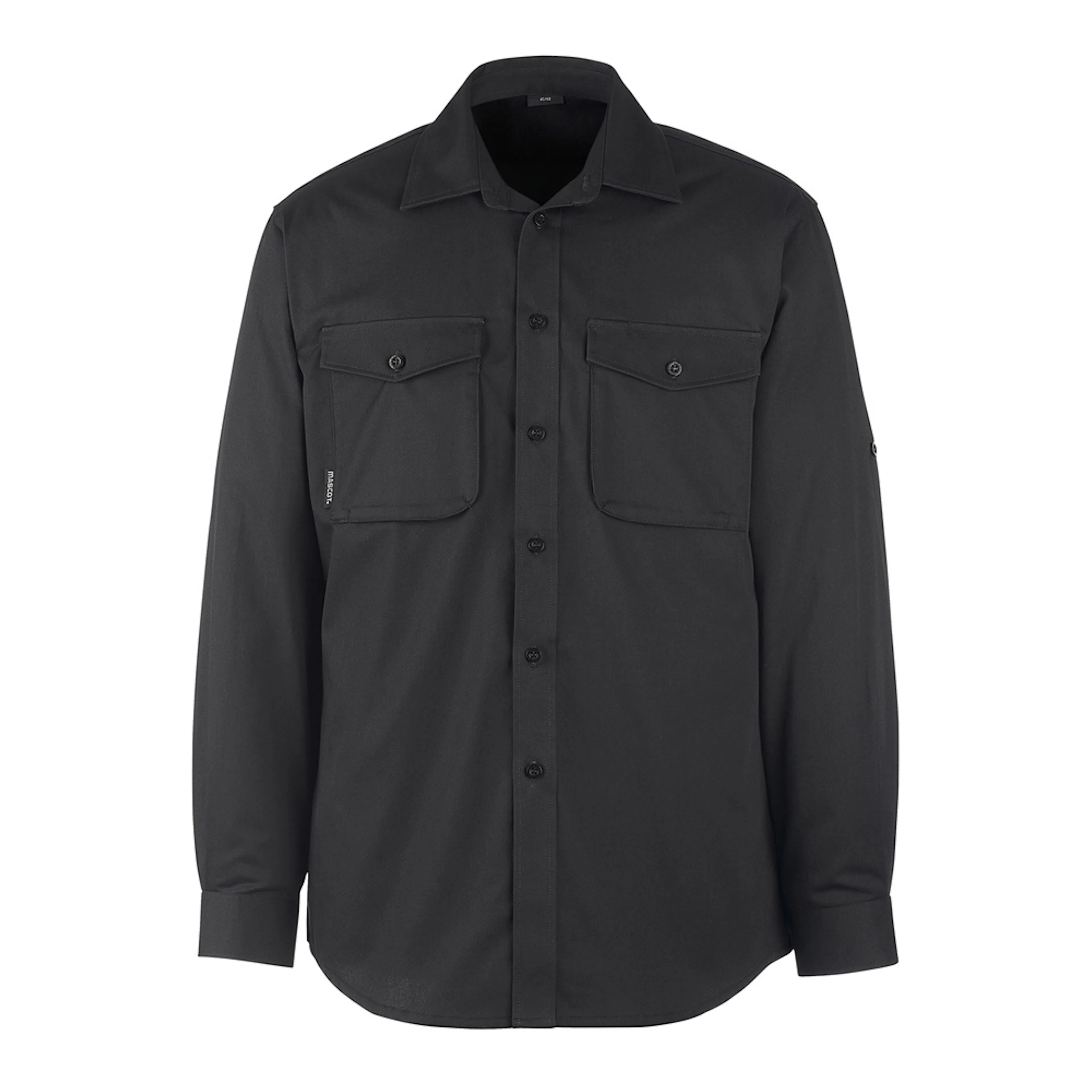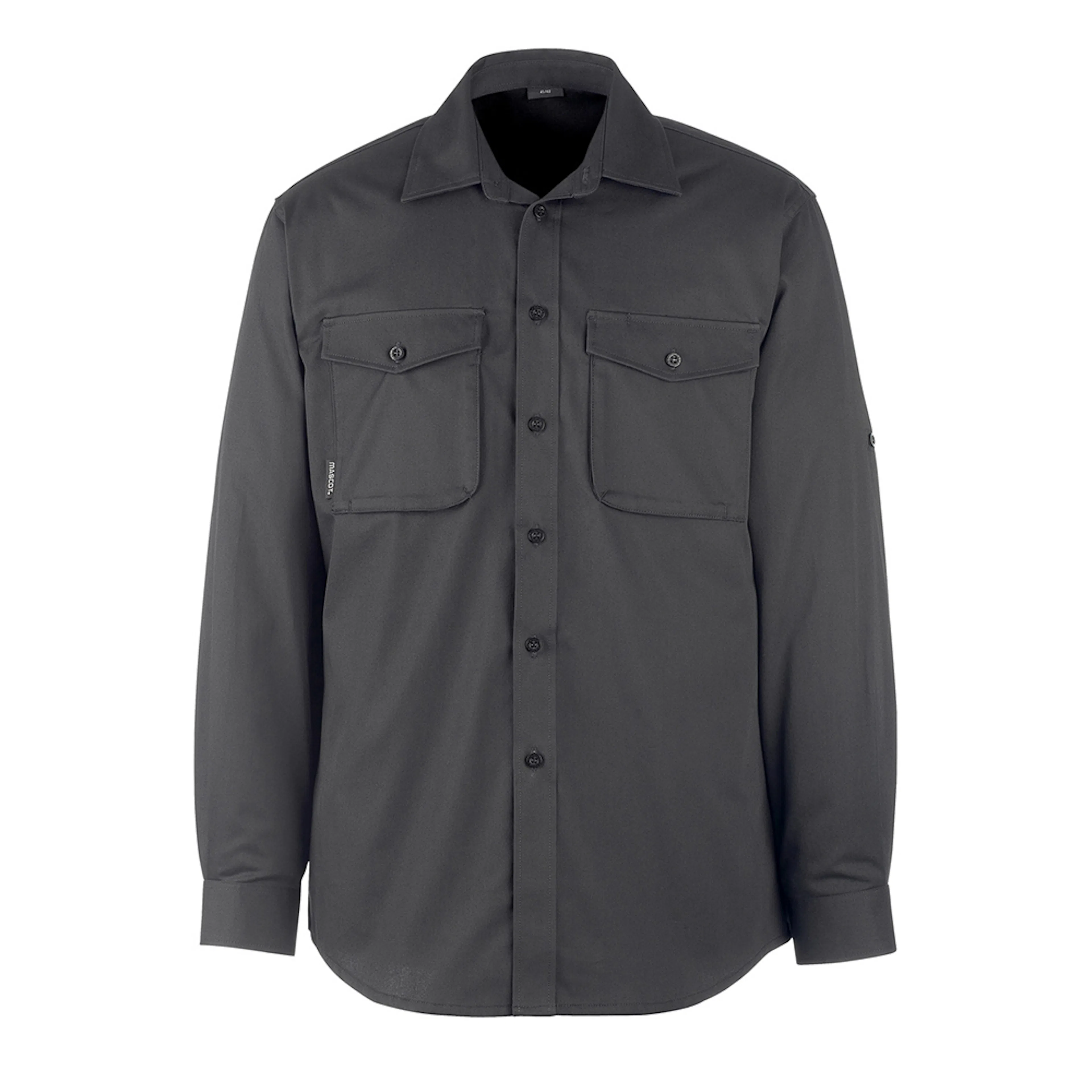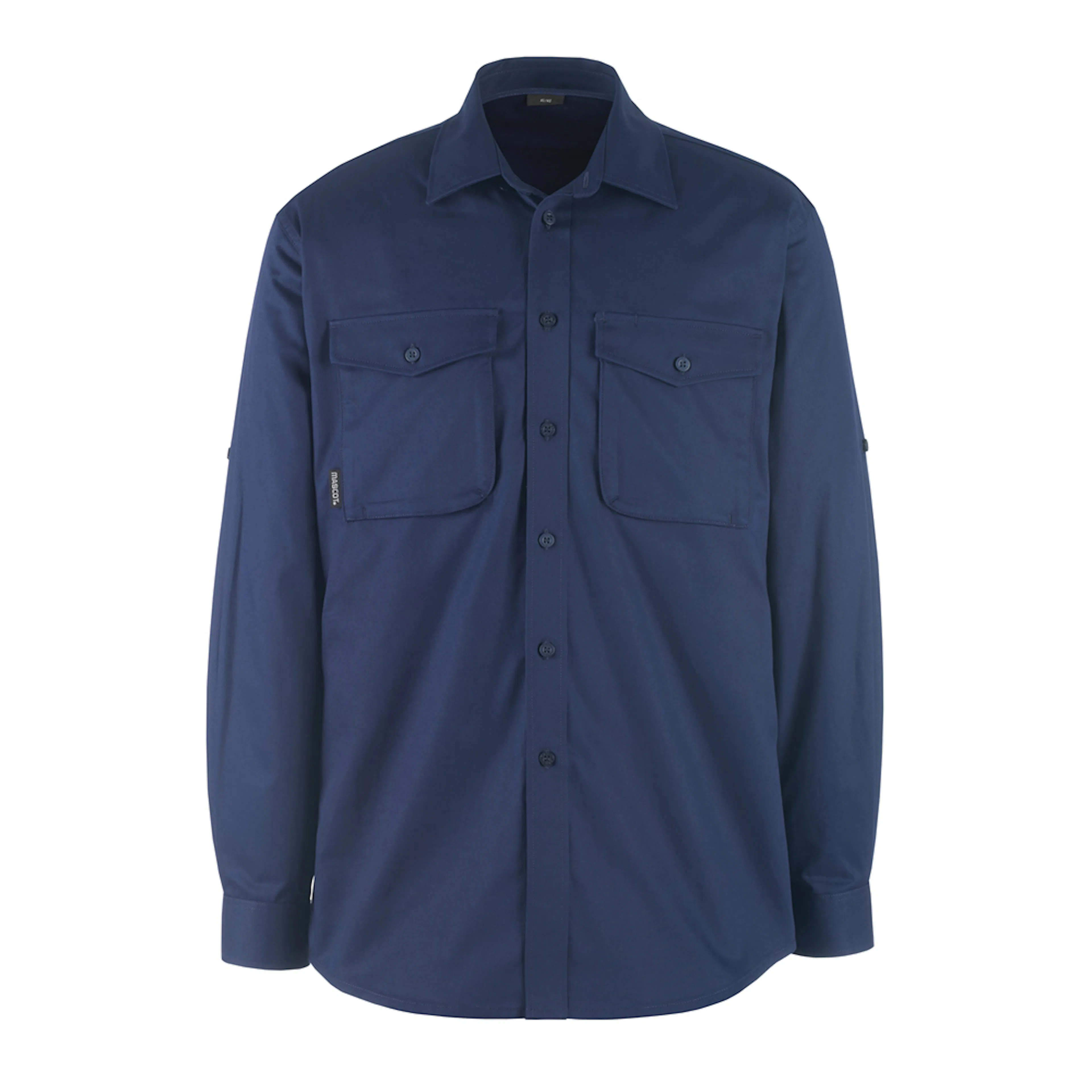 Modern passform. Slå med knappar. Krage med dolda knappar, som håller kragen på plats. Bröstfickor med lock. Pennhållare. Ärmarna kan kavlas upp och sättas fast med knappar. Ärmslitsen är förstärkt. Manschetter med trycknappar.