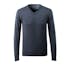 Modern passform. V-hals. Ribbstickning i halsen och vid handlederna.