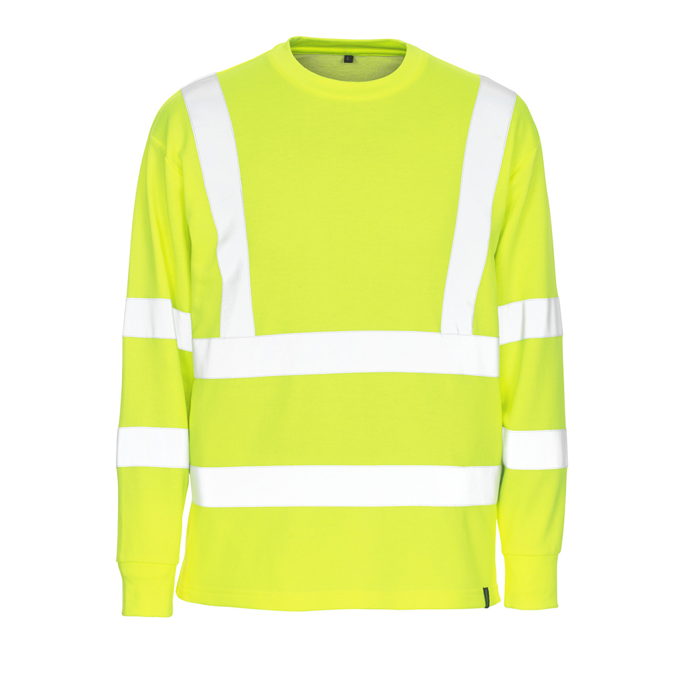 Fluorescerande och med lod- och vågräta reflexer. Reflexen är elastisk. Rund hals. Ribbstickning i halsen och vid handlederna. Nackband. Slits i sidorna. Ryggen är förlängd.